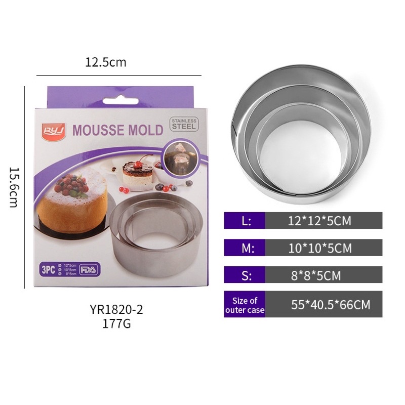 3pcs Round Stainless Mousse Ring Molder Cutter Baking 3/4/5 inches Dessert Pancake Molder TLC