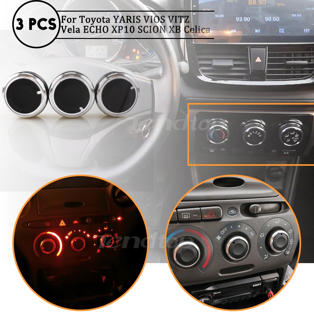 3pcs/Set AC Switch Knob Air Conditioning Aluminum Alloy Heat Control Knobs For Toyota Tacoma Platz Vios Vitz Yaris Echo Scion XB
