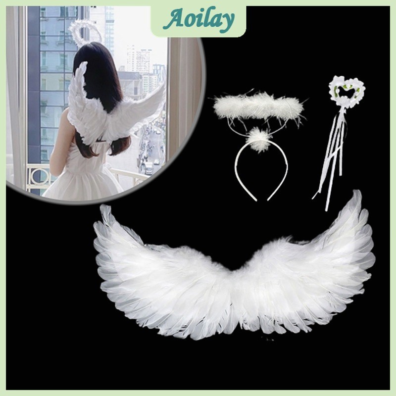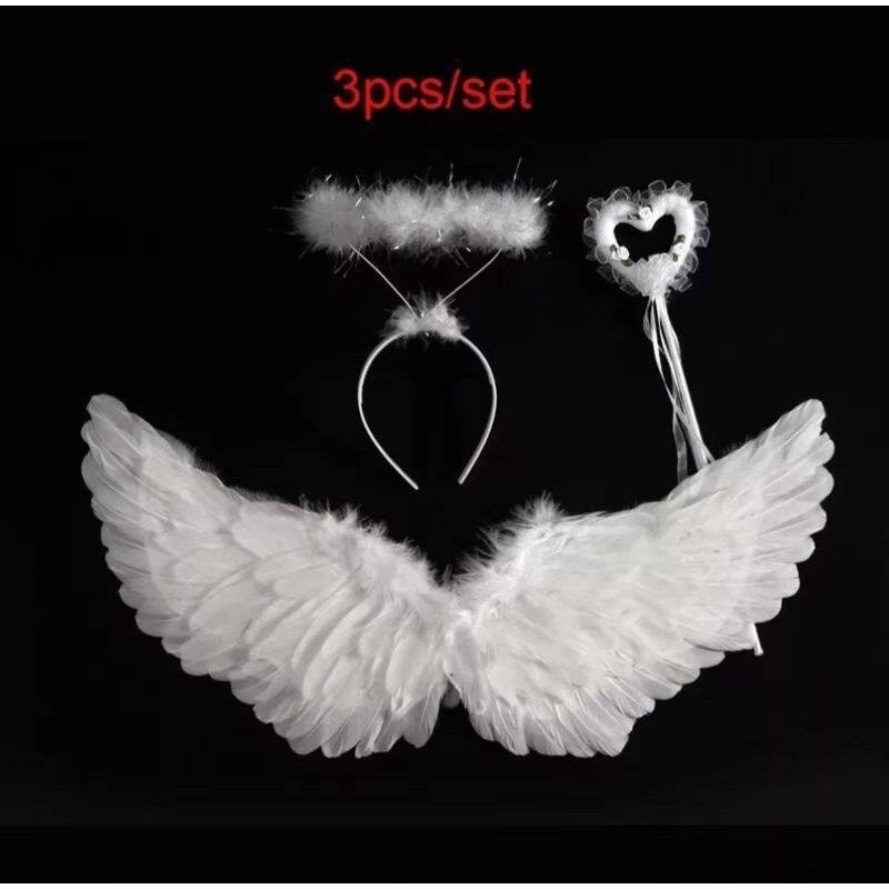 3pcs/set Angel Wings Kids Angel Costume White Angel Feather Wings/Halo/Wand for Cosplay Photography