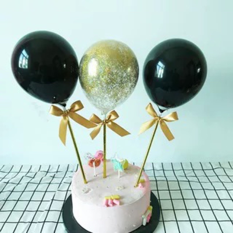 3pcs set Balloon Cake Topper Metallic Confetti Cake Decoration TCC