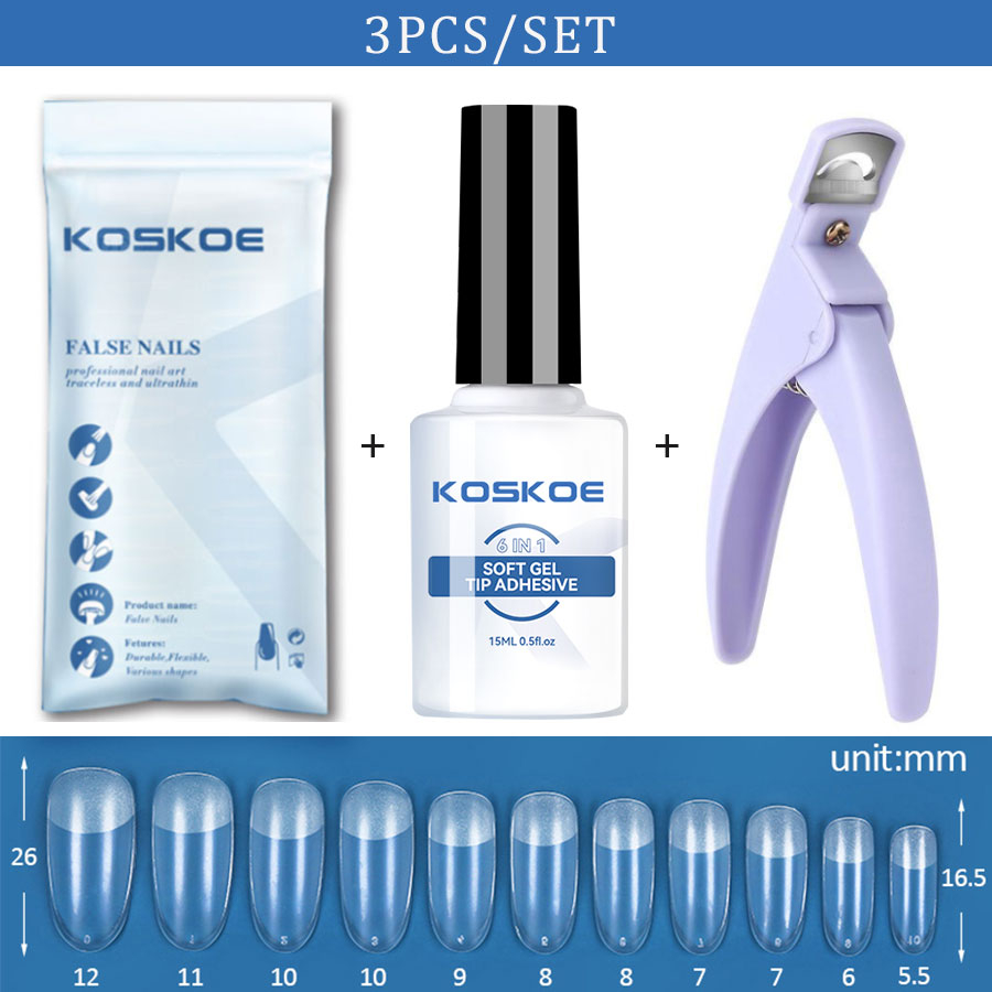 3pcs/set Clear Matte Fake Nail Tips Set with 15ml Soft Gel Tip Adhesive Nail Polish Nail Tips Cutter Tools Set