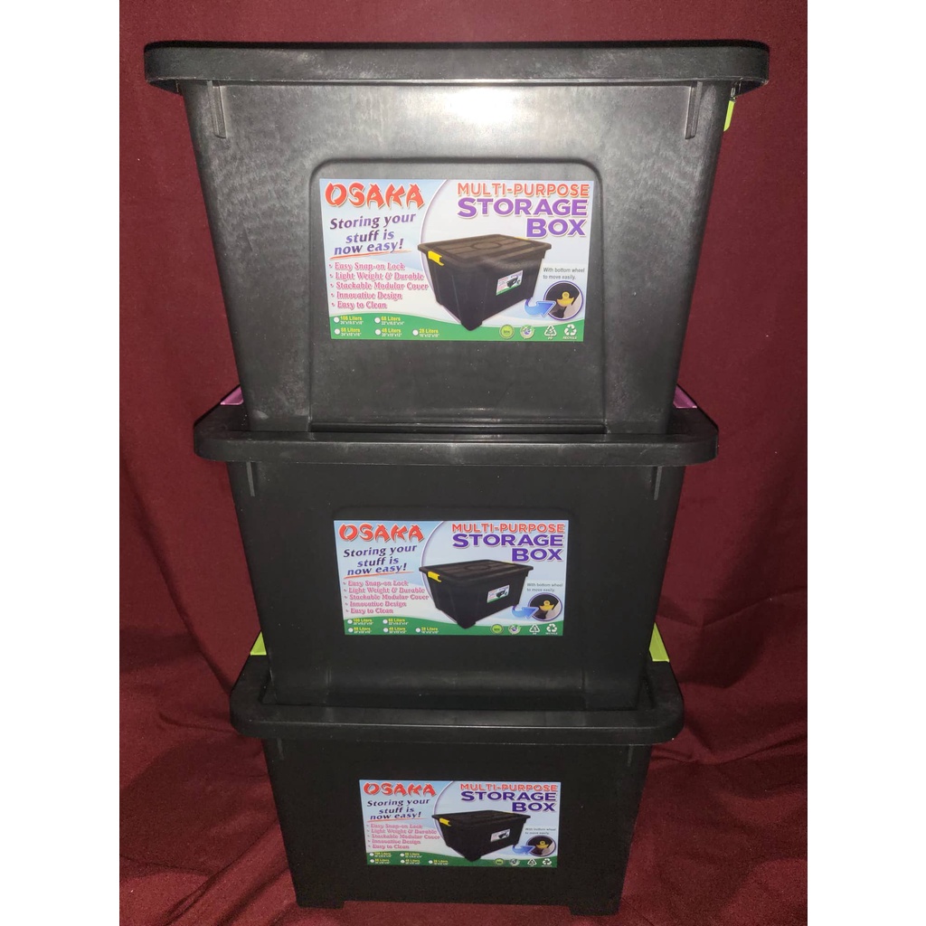 3pcs. heavy duty storage box w/ cover lock and wheels 16x12x10 inches / 28 Liters - space saving box