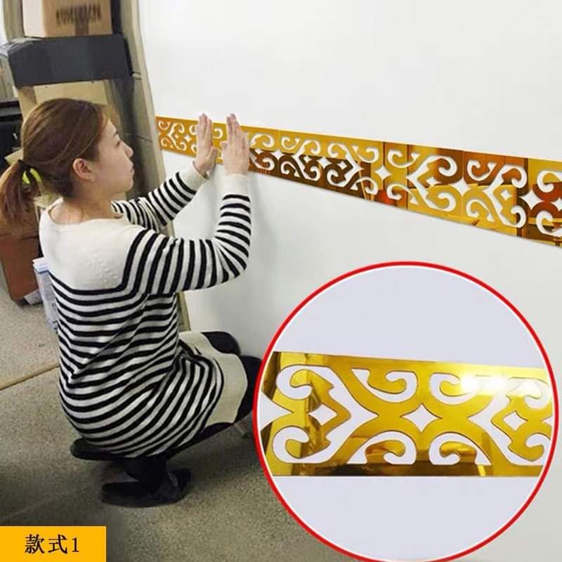 3pcsx 25*10cm Waist Line 3D Acrylic Mirror Self-adhesive Wall Stickers Home Decor3