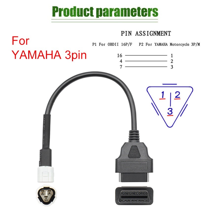 3pin to OBD Extension cable Motorcycle Diagnostic Cable For Yamaha ATV motorbikes&similar