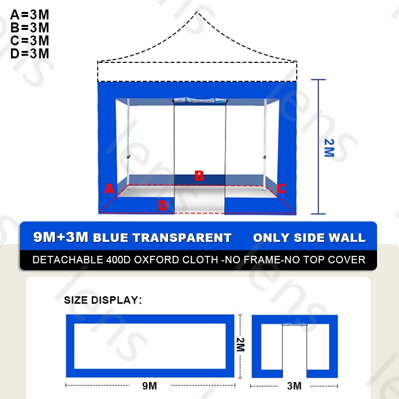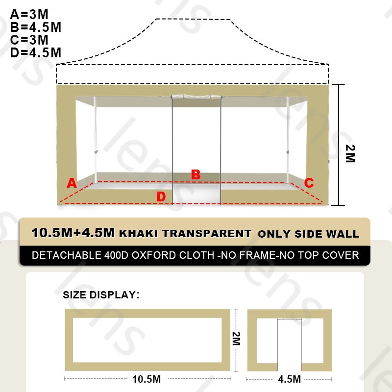 3x4.5M Tent Replacement Cover Outdoor Big Tent Cover Family Rainproof Retractable Tent Side Cover