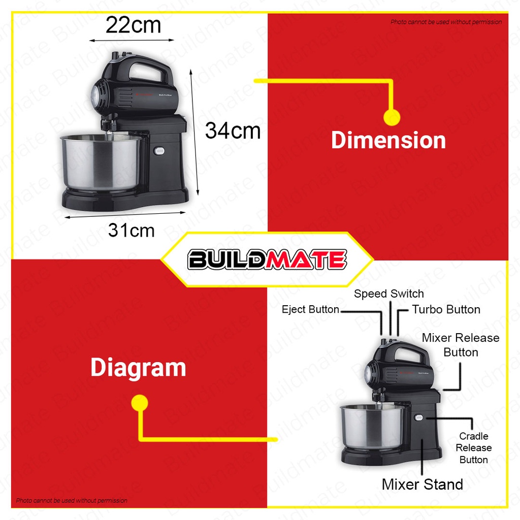 HANABISHI Kitchen Stand Mixer with Mixing Bowl Baking 2.8L 5-Speed Control HHMB-140AUTO •BUILDMATE•