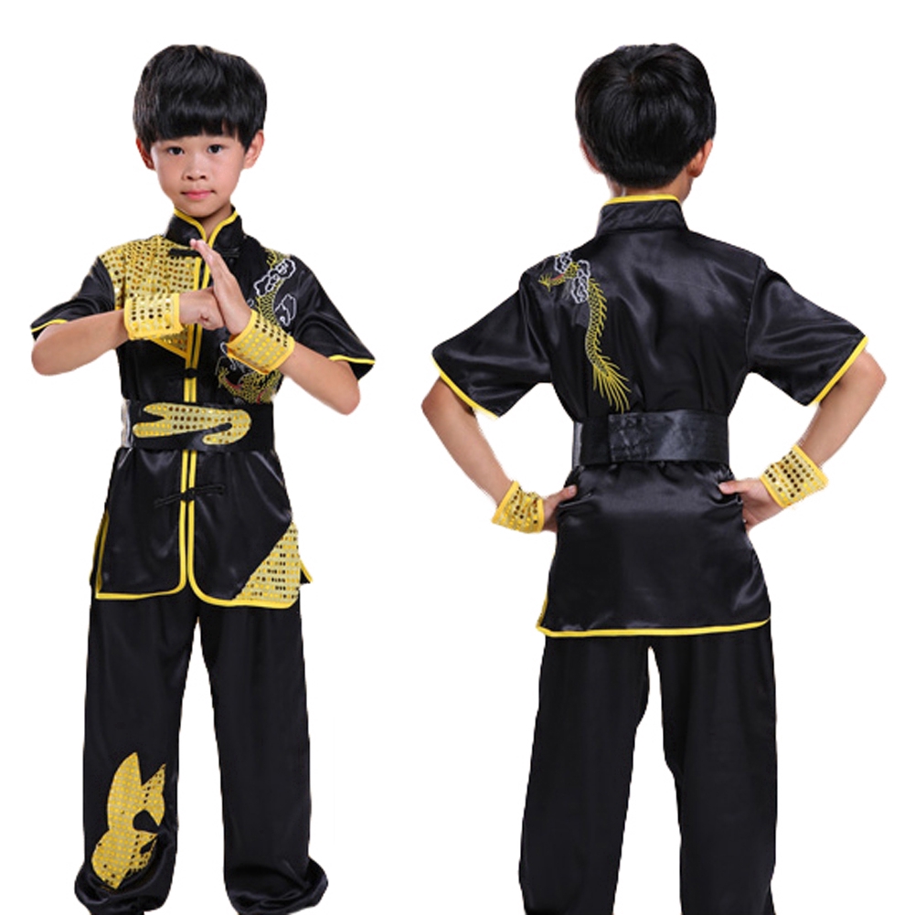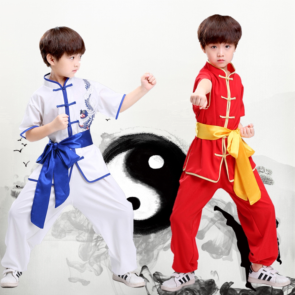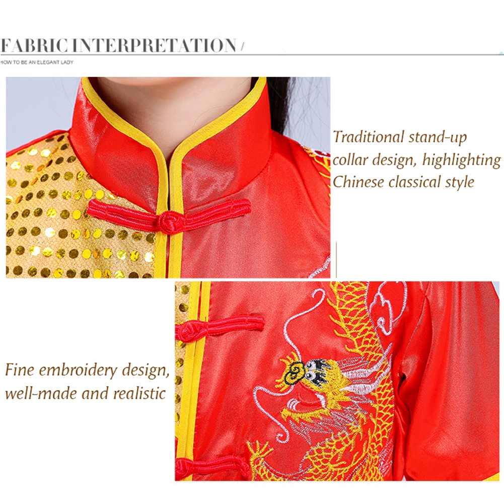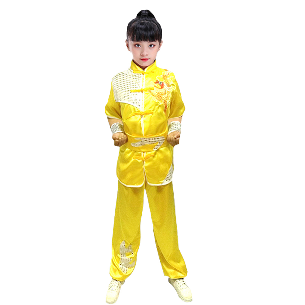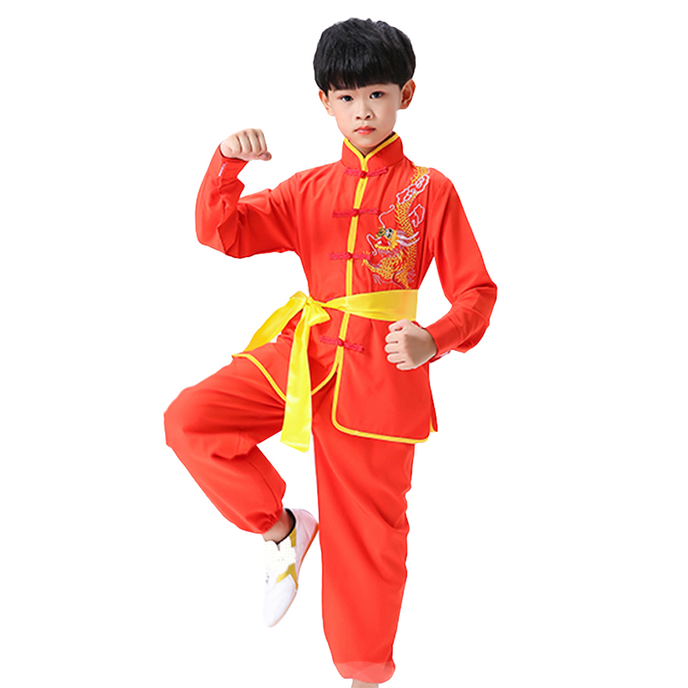 4-15 Years Kids Boys Girls Kung Fu Costume Embroidery Dragon Set Children Chinese New Year Clothes Stage Performance Tang Suit