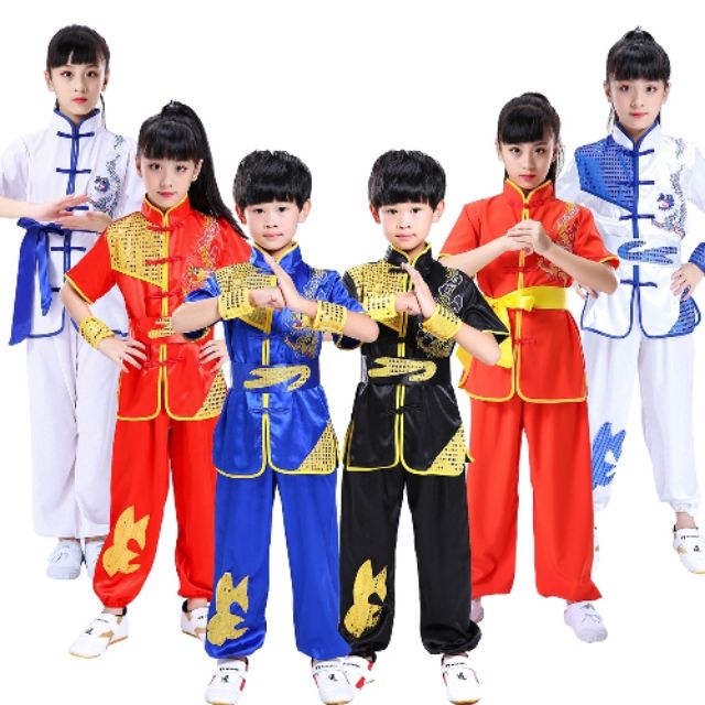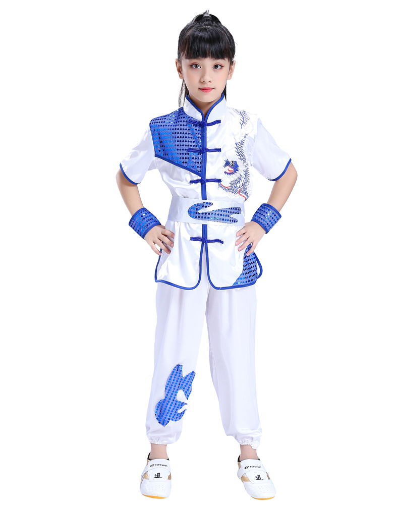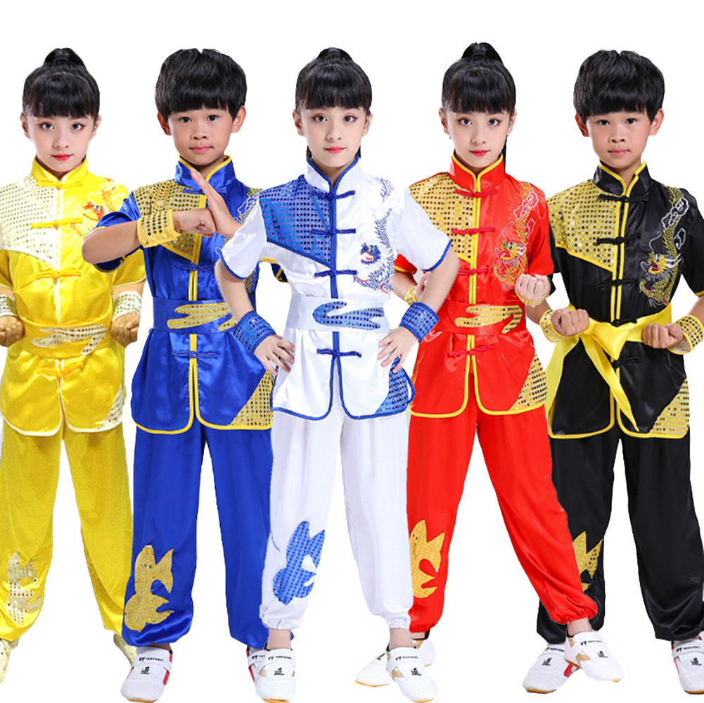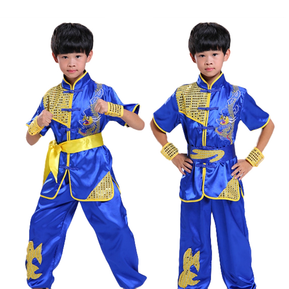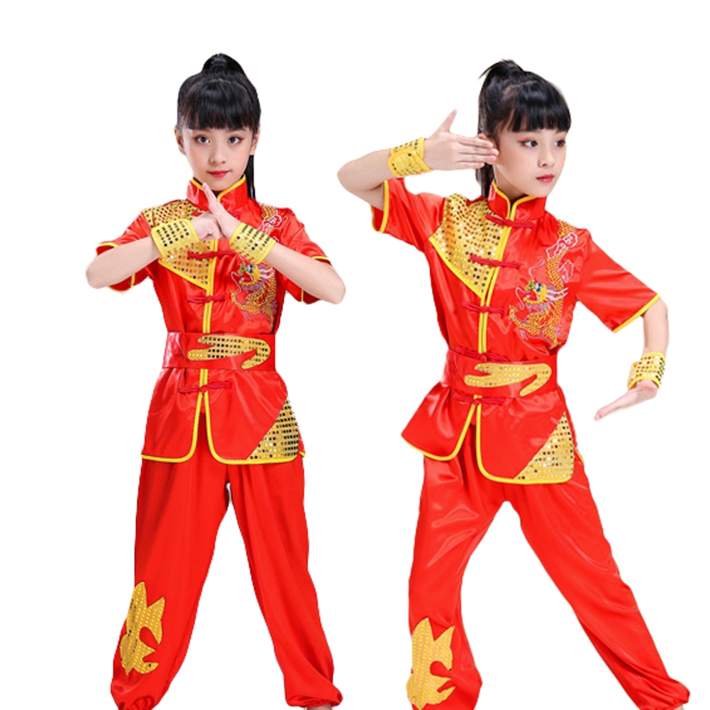 4-15 Years Kids Boys Girls Kung Fu Costume Embroidery Dragon Set Children Chinese New Year Clothes Stage Performance Tang Suit