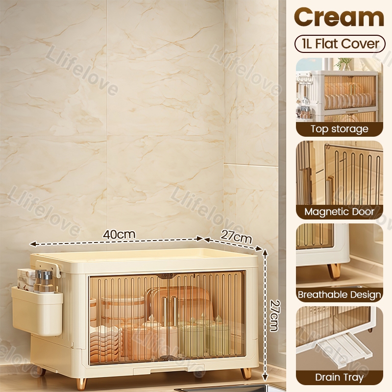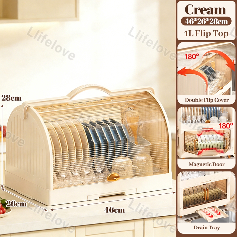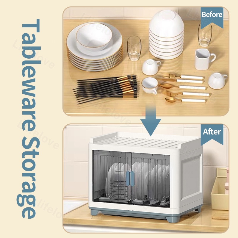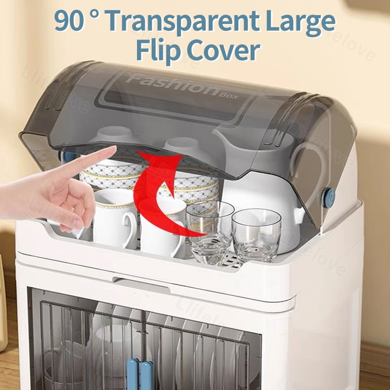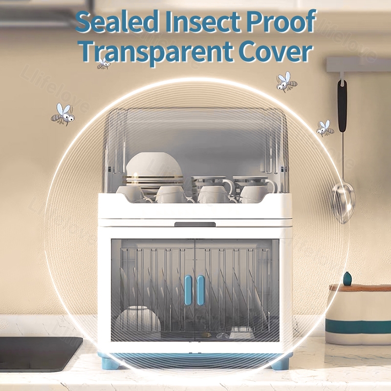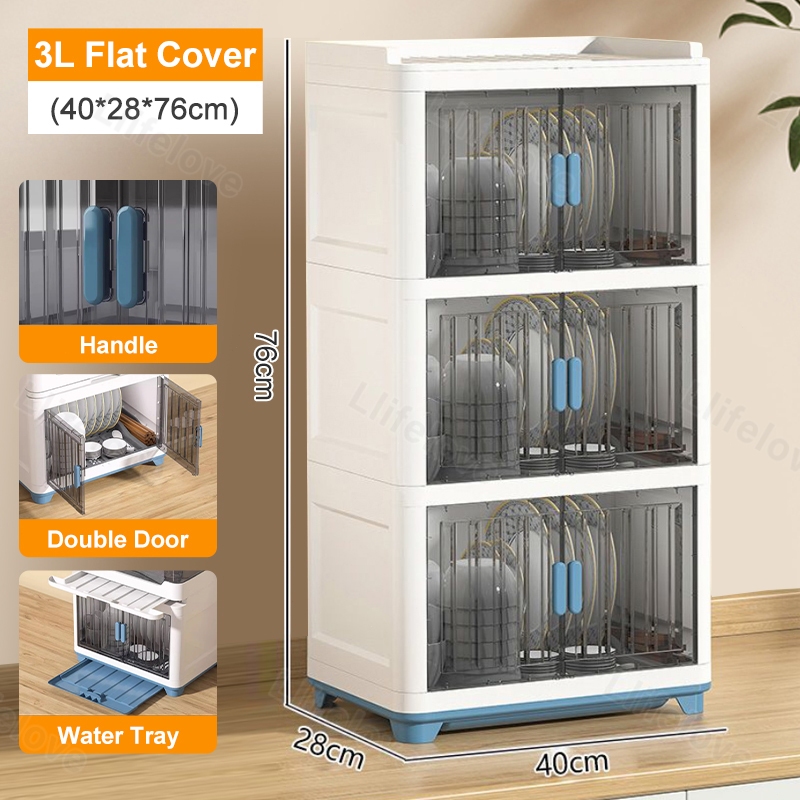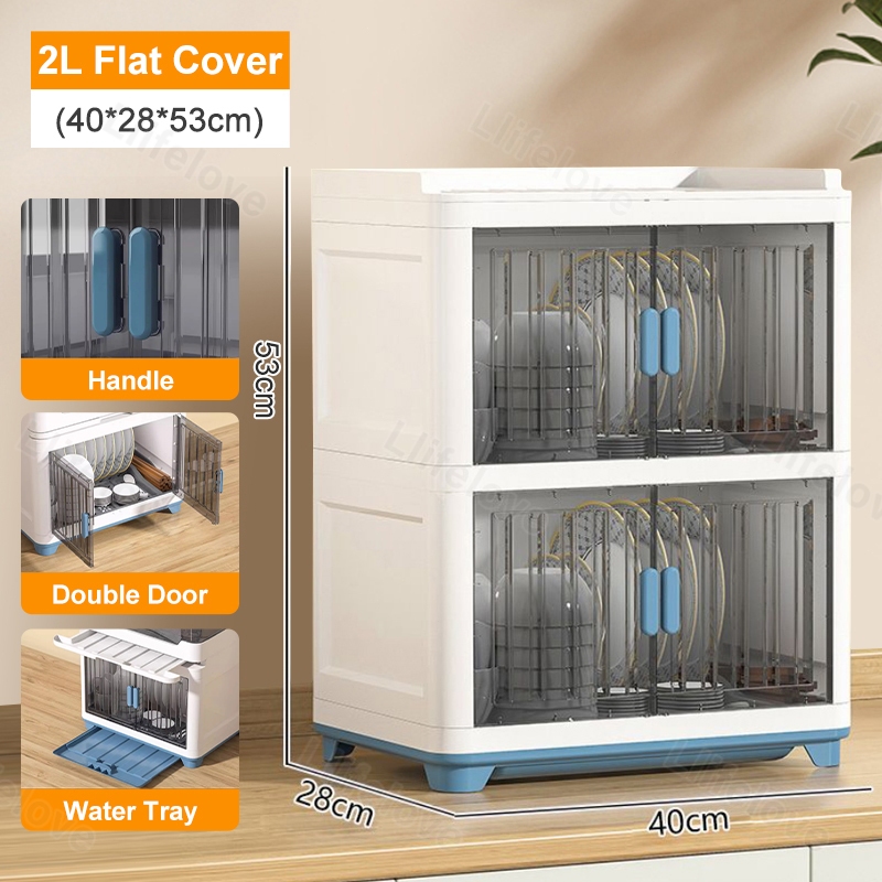 4/3/2 Layers Dish Rack Cabinet With Cover Kitchen Clamshell Cupboard Plate Organizer Dish Drain Rack