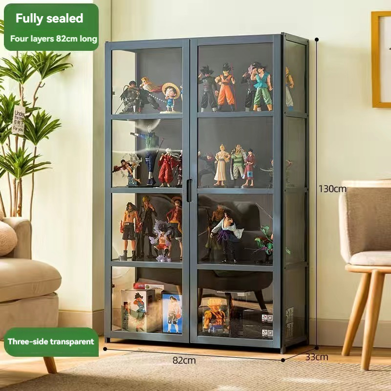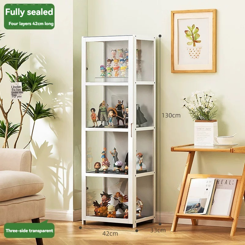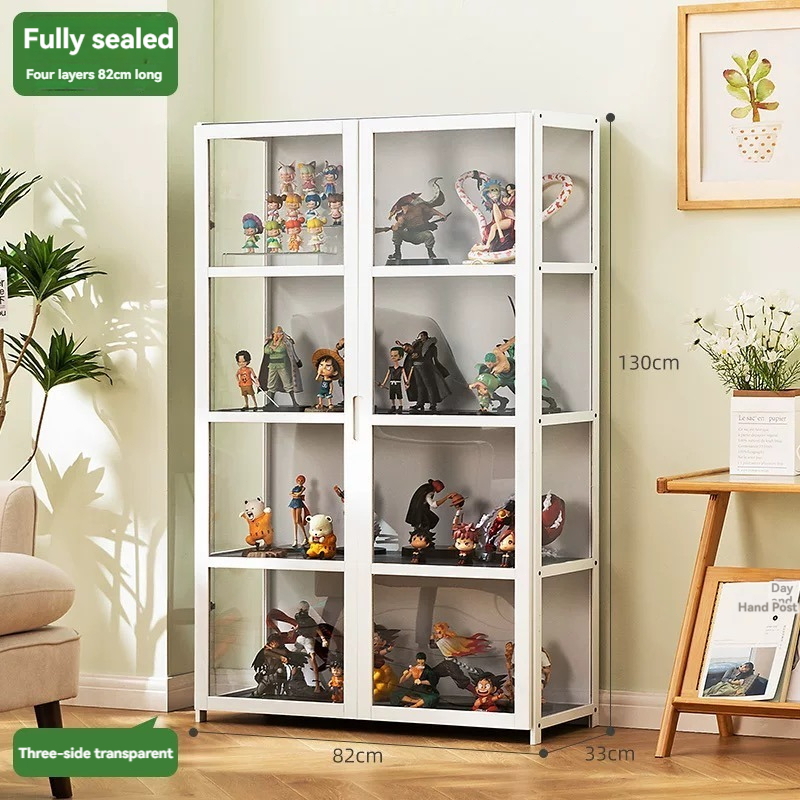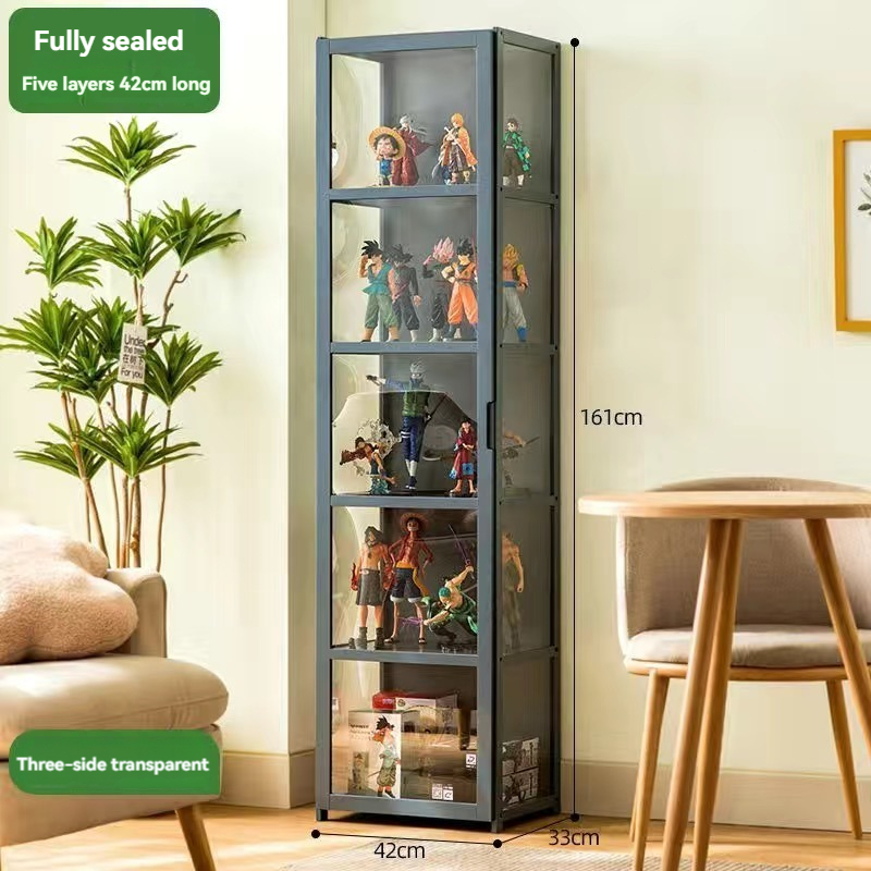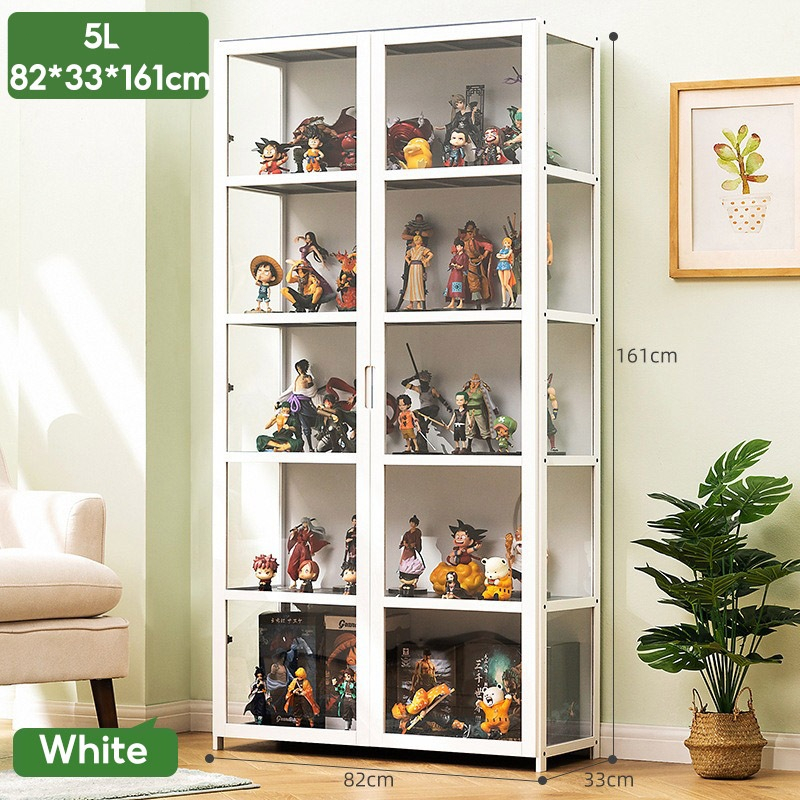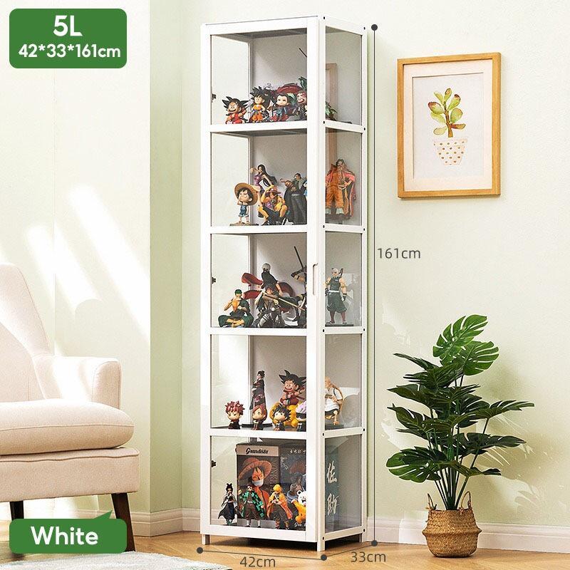 4/5 Layers Display Cabinet 2 Doors Acrylic Bamboo Three Sided Transparency for living room display