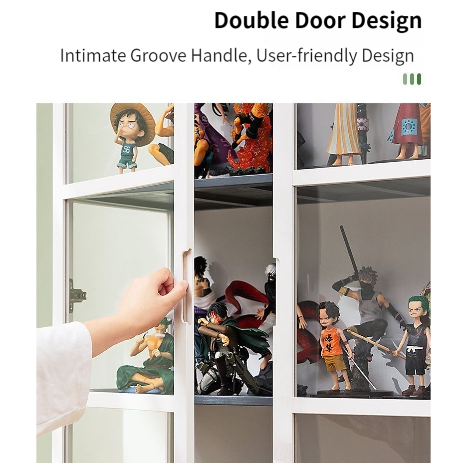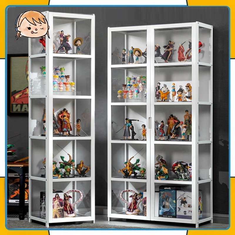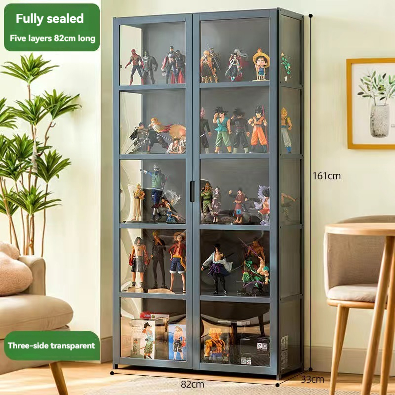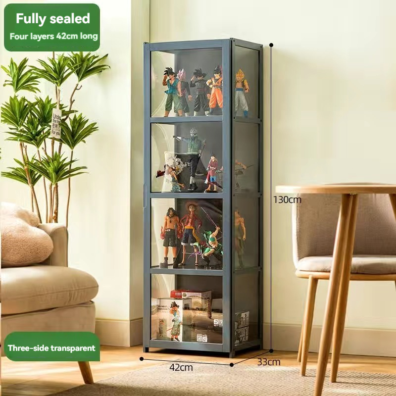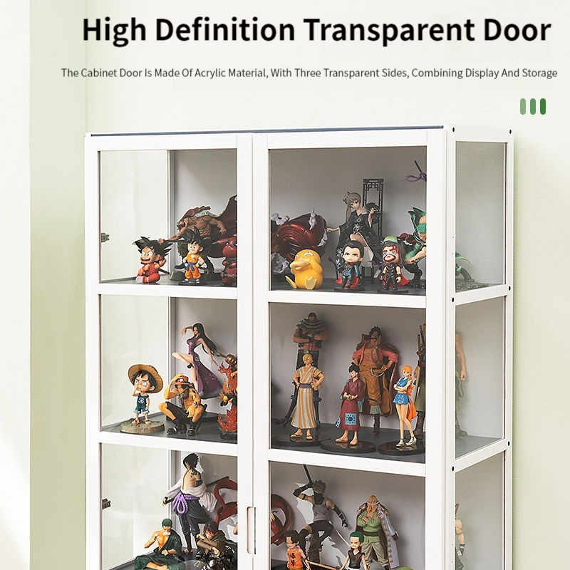 4/5 Layers Display Cabinet 2 Doors Acrylic Bamboo Three Sided Transparency for living room display