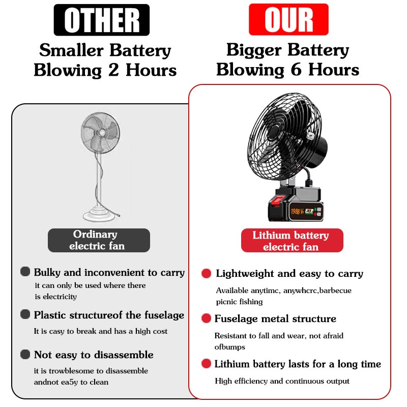 4/6/8” inch Cordless Fan Long Battery Life Rechargeable Desk Portable Stand Fan Lithium-Ion High Pow