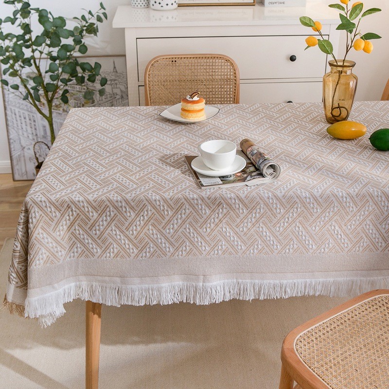 4-6-8-10 Seaters Rectangular Tablecover Linen Waterproof Anti Scratch Tablecloth Japanese Wave Pattern Dining Table Cover