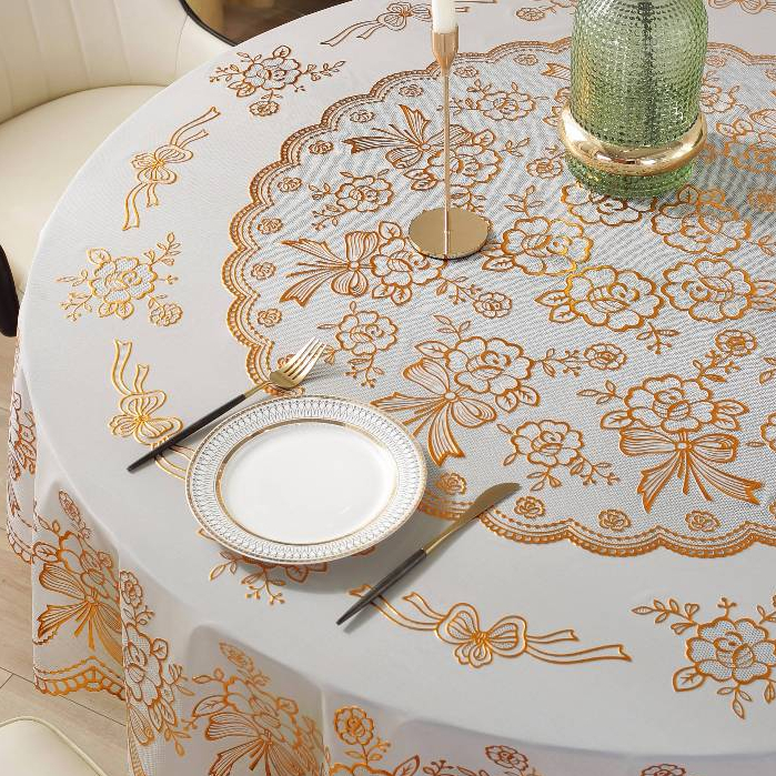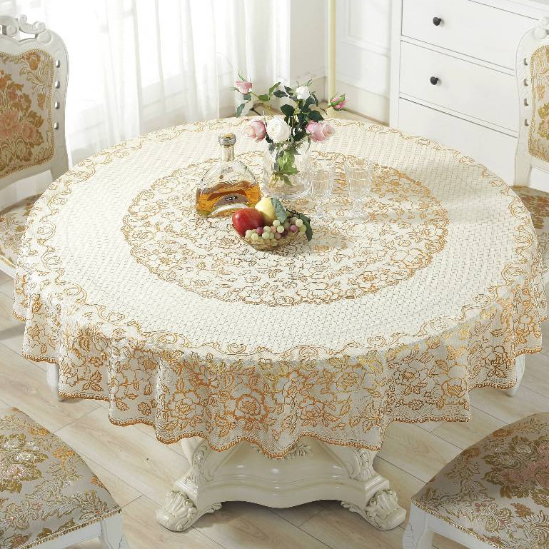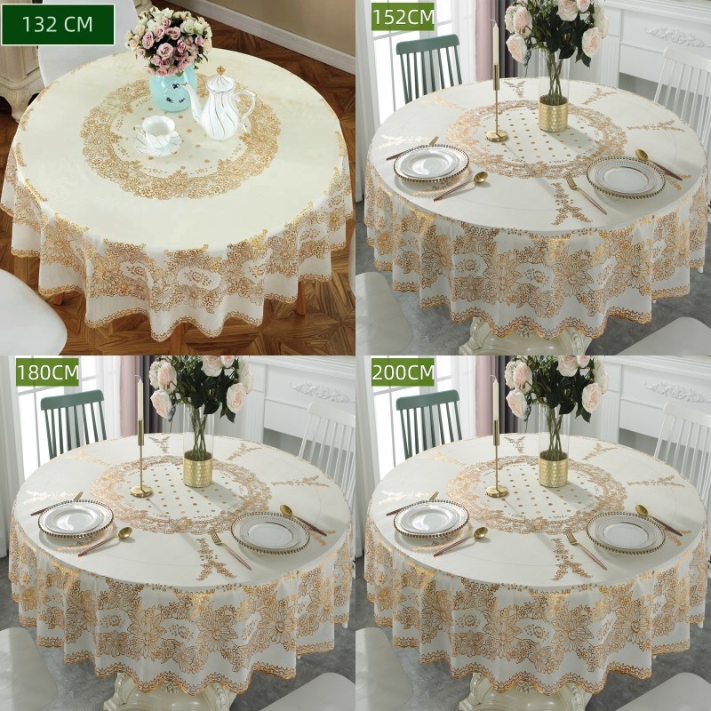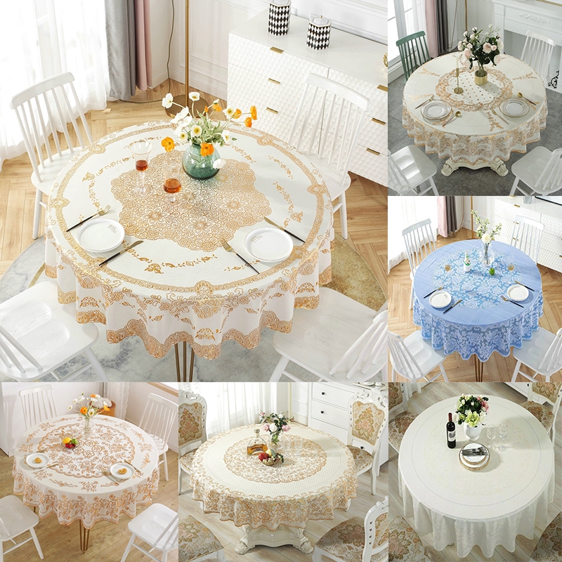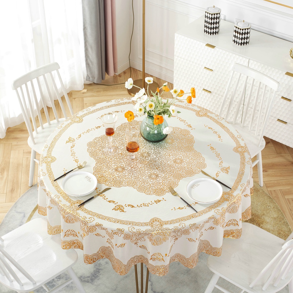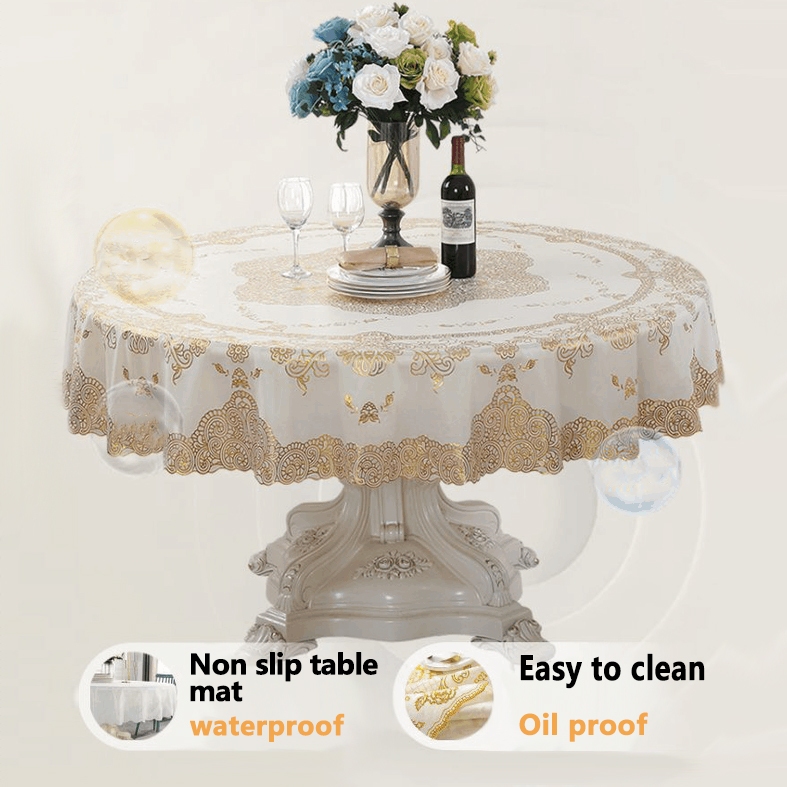 4/6/8/10 Seaters Round Gold Tablecloth Waterproof Oil Proof Mantel Table Cloth Dining PVC Tablecover