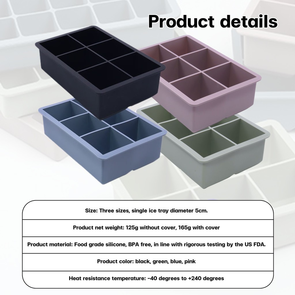 4/6/8 Grid Big Ball Square Ice Cube Mold Silicone Ice Cube Maker DIY Square Large Ice Cube Tray