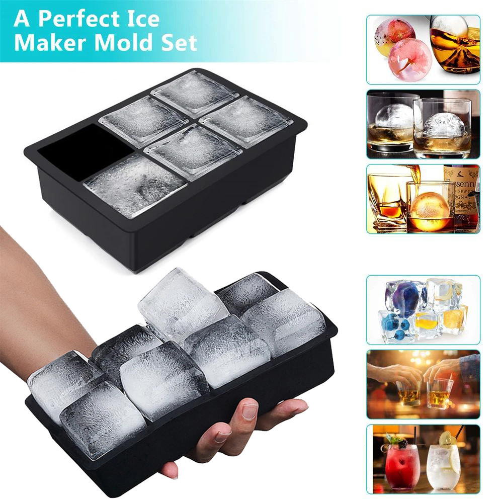 4/6/8 Grid Large Ice-Cube Mold - Ice-Cube Square Mold - Easy To Release Silicone Ice-Cube - Tray Silicone Mold - DIY Ice Maker - Home Bar Ice Ball Molds