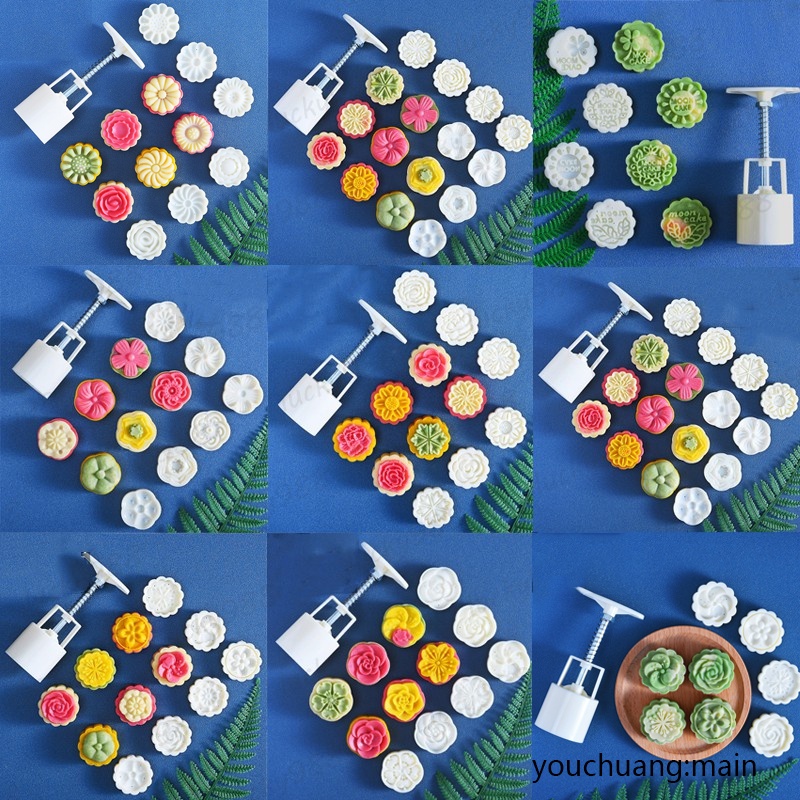 4/6Pcs Mooncake Mold Moon Cake Stamp Cookie Cutter Hand Press Fondant Moon Cake Mould Pastry Baking Tool Kitchen Tools