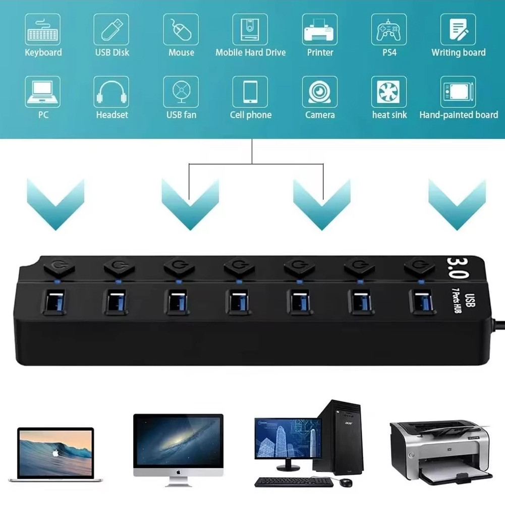 4/7 Ports USB Port Extension 3.0 High Speed USB Hub For Laptop Multiple Usb Hub Splitter With Switch