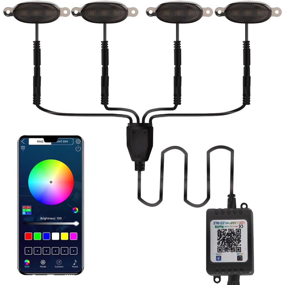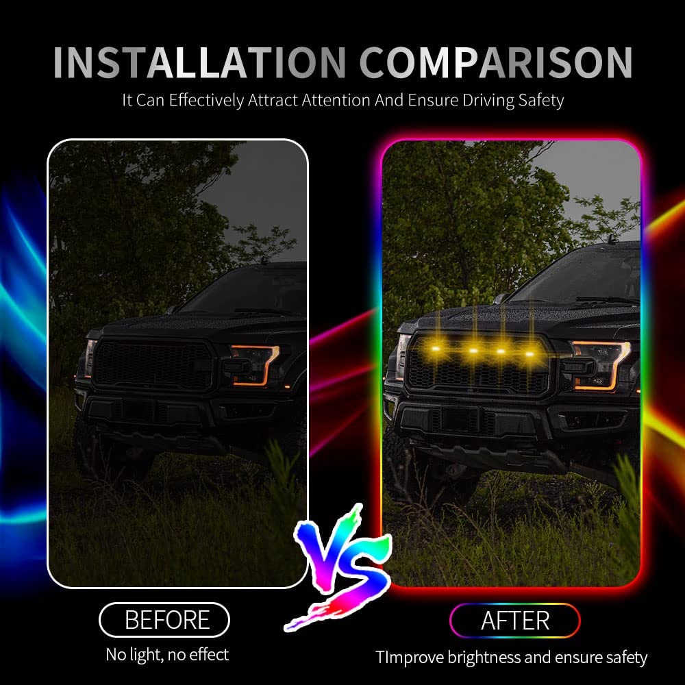 4/8 In 1 LED Grille Lights APP Control DIY RGB Front Grille Atmosphere Decorative Lamp DRL Kit for Offroad Car Pickup Truck SUV