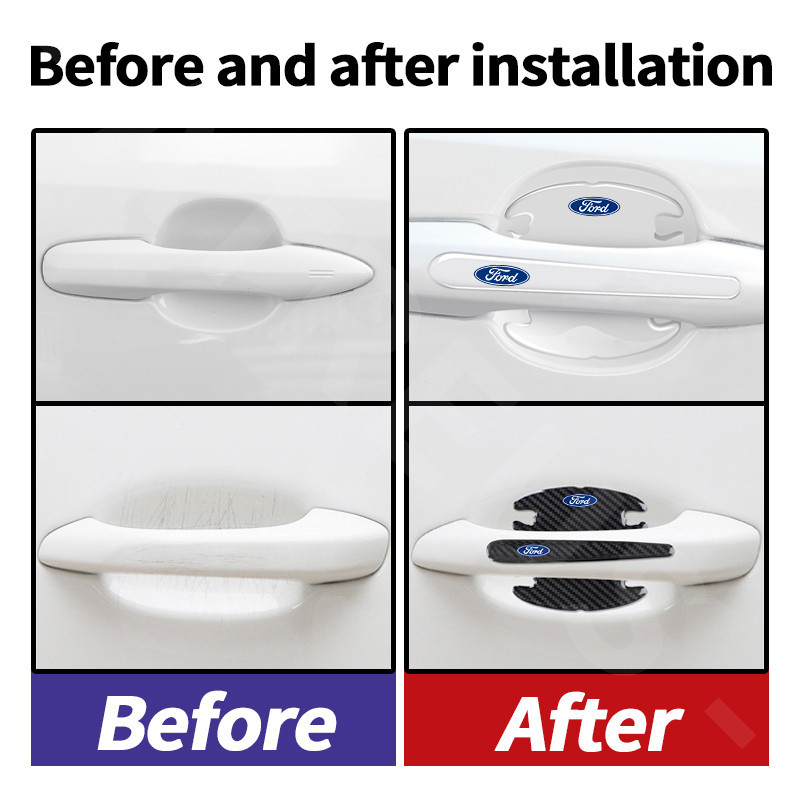 4/8Pcs Ford Car Door Handle Protector Carbon Fiber Texture Car Door Bowl Sticker Anti Scratch Sticker For Ford Ranger Raptor Territory EcoSport Everest Bronco Mustang Explorer