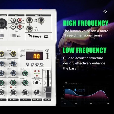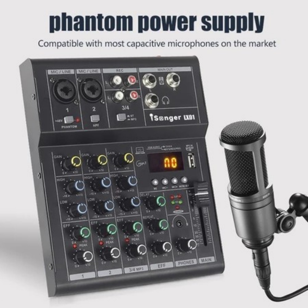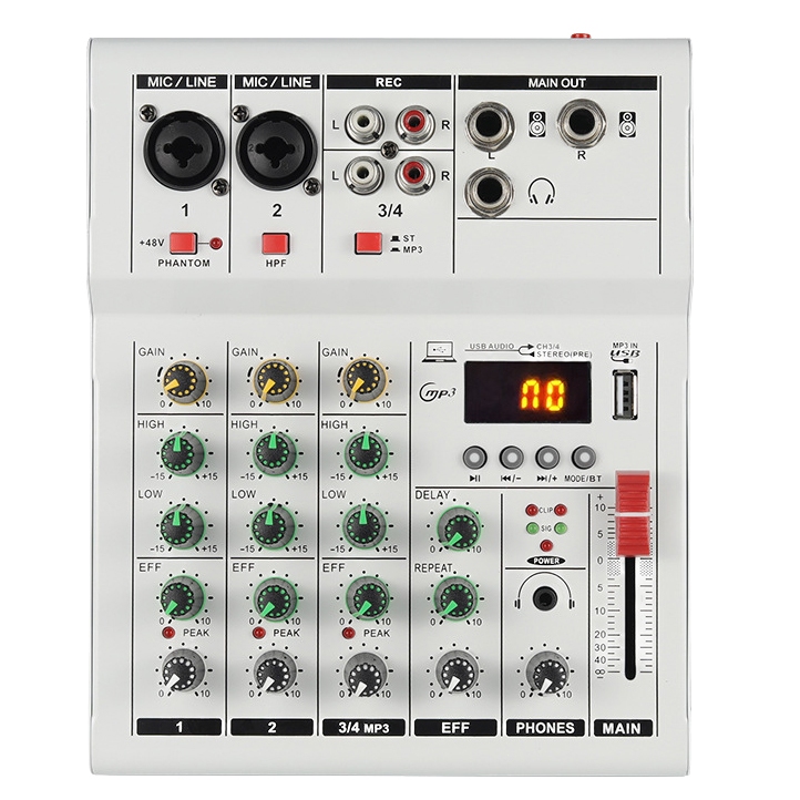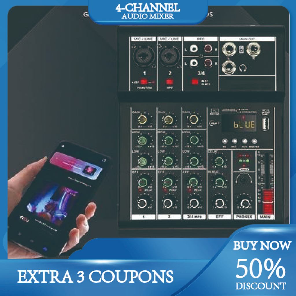 4 Channel Audio Mixer Portable Mini Sound Mixer Console with USB