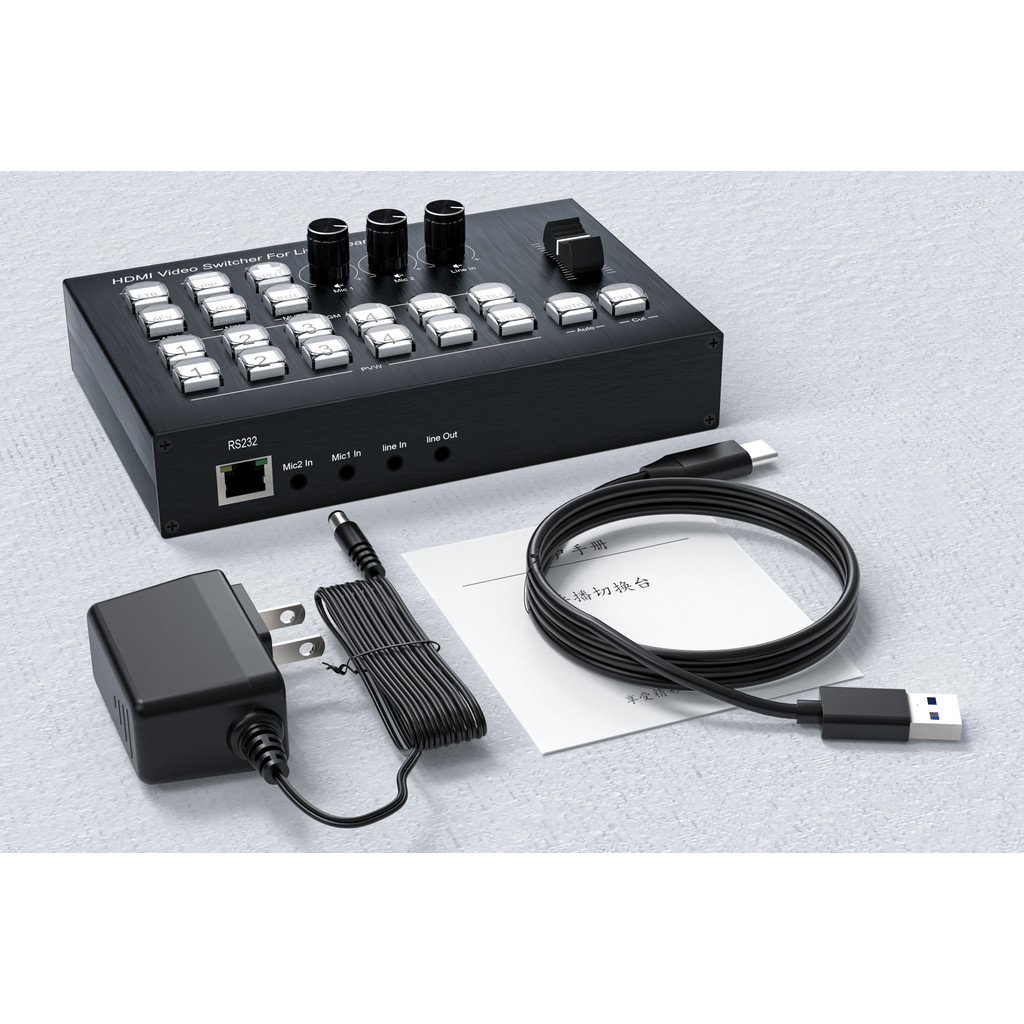 4 Channel HDMI Video Switcher Live Broadcast Streaming 1080P Video Mixer Station Live Streaming PGM Seamless Switch 6 Picture PVW