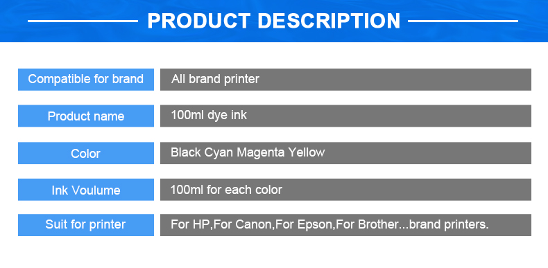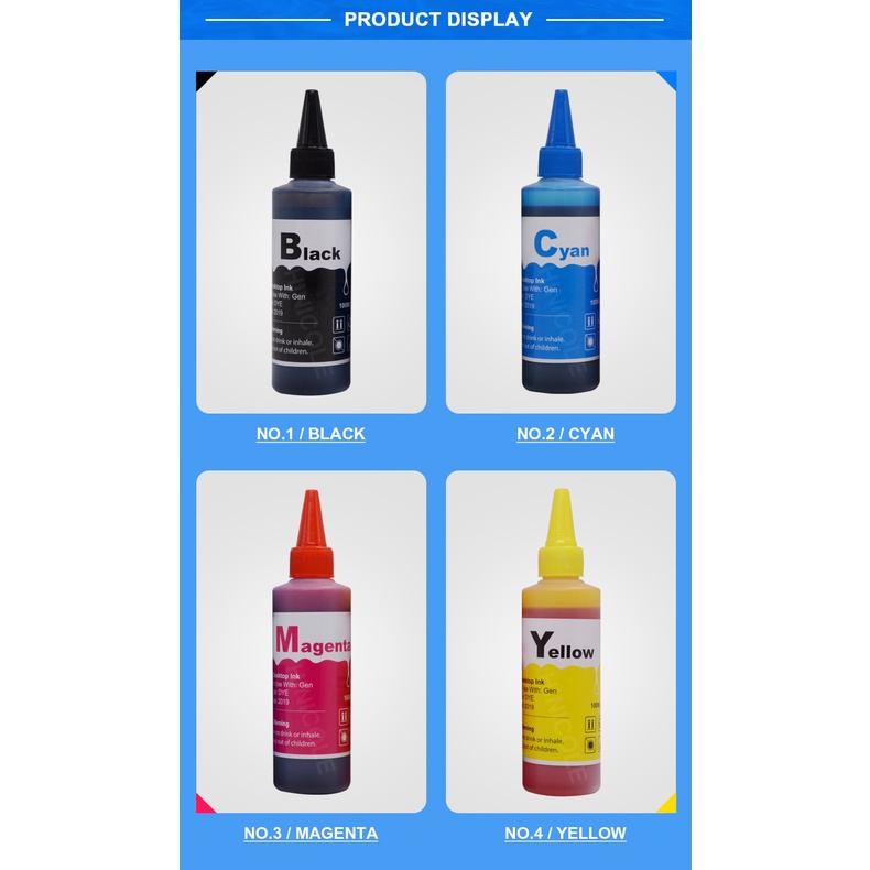 4 Color Universal 100ml Refill Dye Ink Kit Printer CISS Ink Tank 100ml Bottle Ink