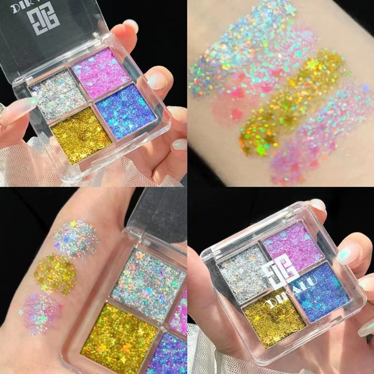 DIKALU 4-Color High-Shine Glitter Eyeshadow – Pearly, Sparkling, Dazzling for Stage & Dramatic Looks