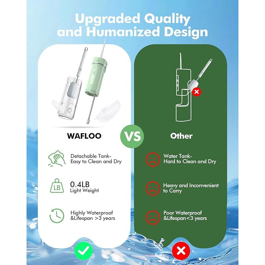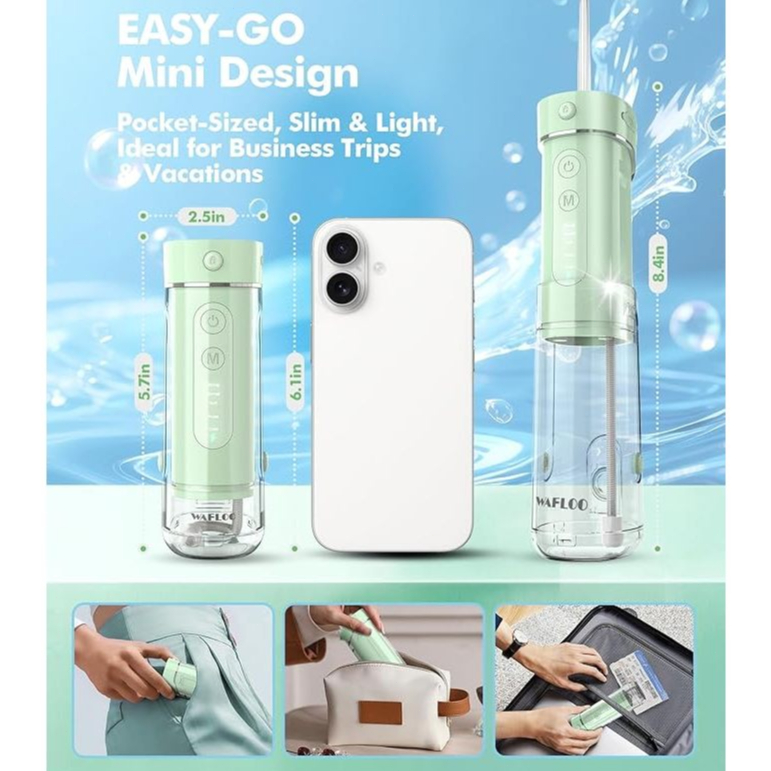 Water Flosser Travel Mini Cordless Portable: 5 Modes Water Dental Floss with Telescopic Water Tank, Oral Irrigator for Teeth Cleaning, Orthodontic, Braces Dental Care (Y826Green)