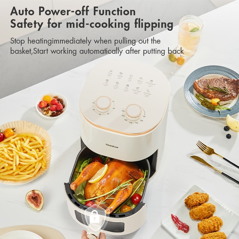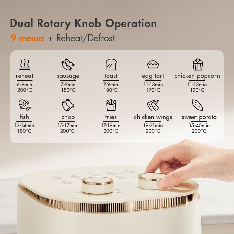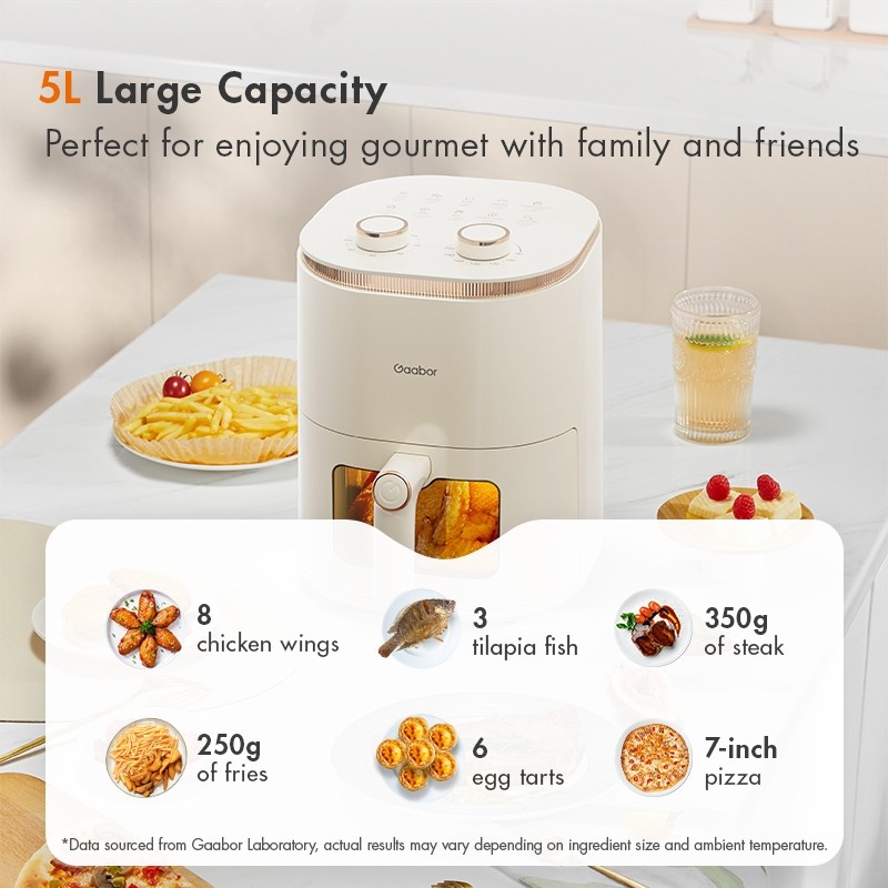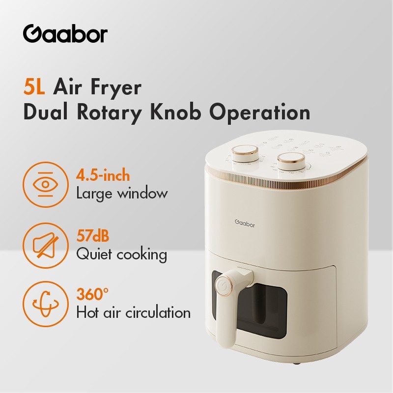 Gaabor Air Fryer Dual Rotary Knob Transparent Window 10 Menus+Reheat/Defrost 5L Capacity