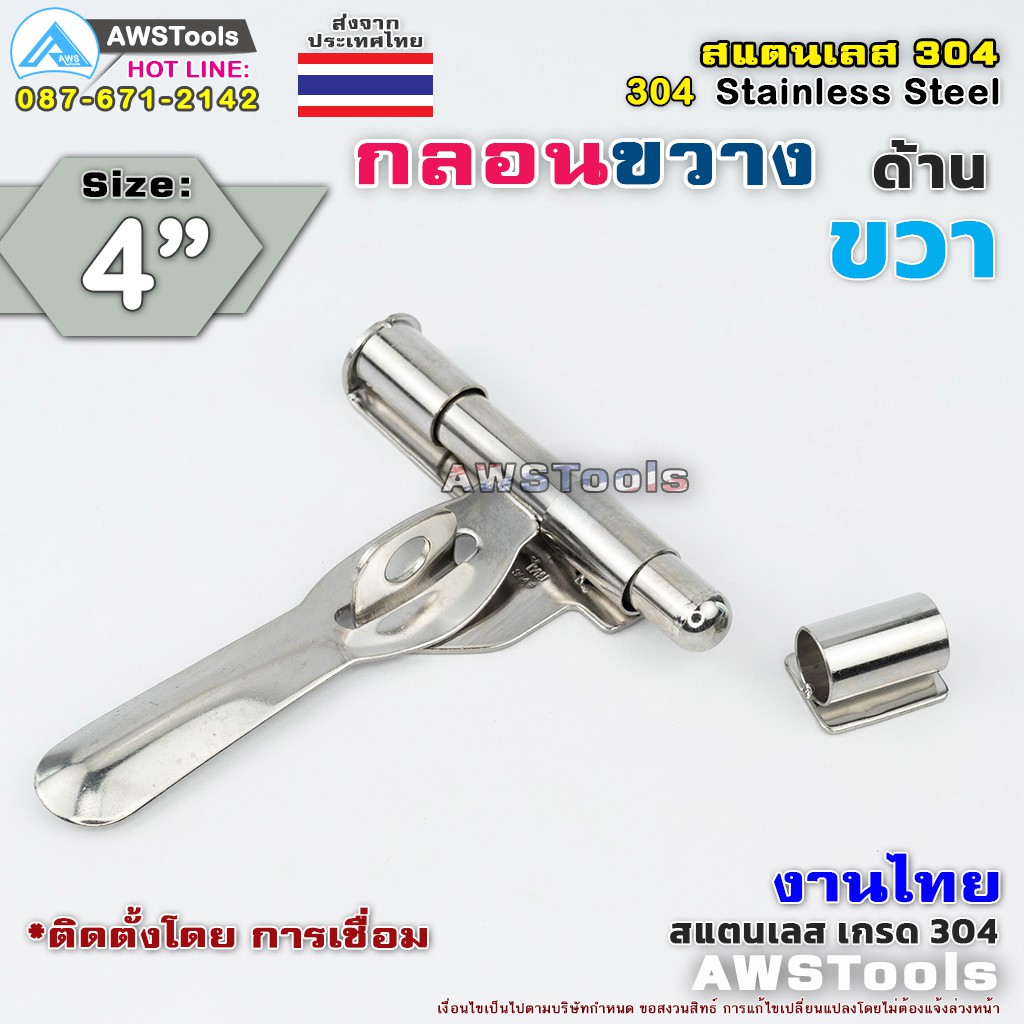 4" Cross Bolt Can Be Locked With A Key Lock. Thai Work Made From Grade 304 Stainless Steel Door Lock Floor