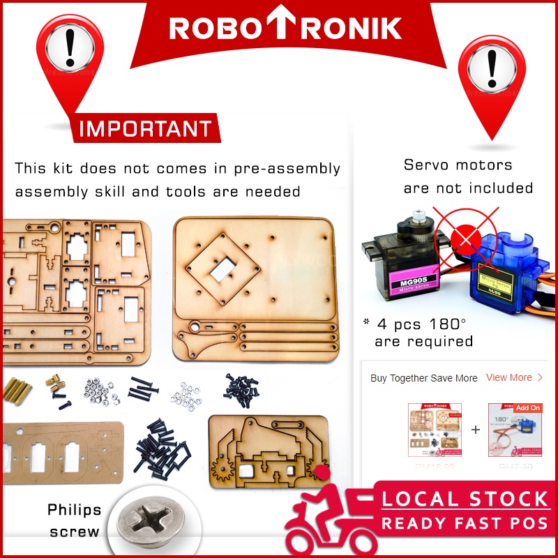 4 DOF Robotic Arm (Acrylic / Plywood) Un-assemble, Arm-only