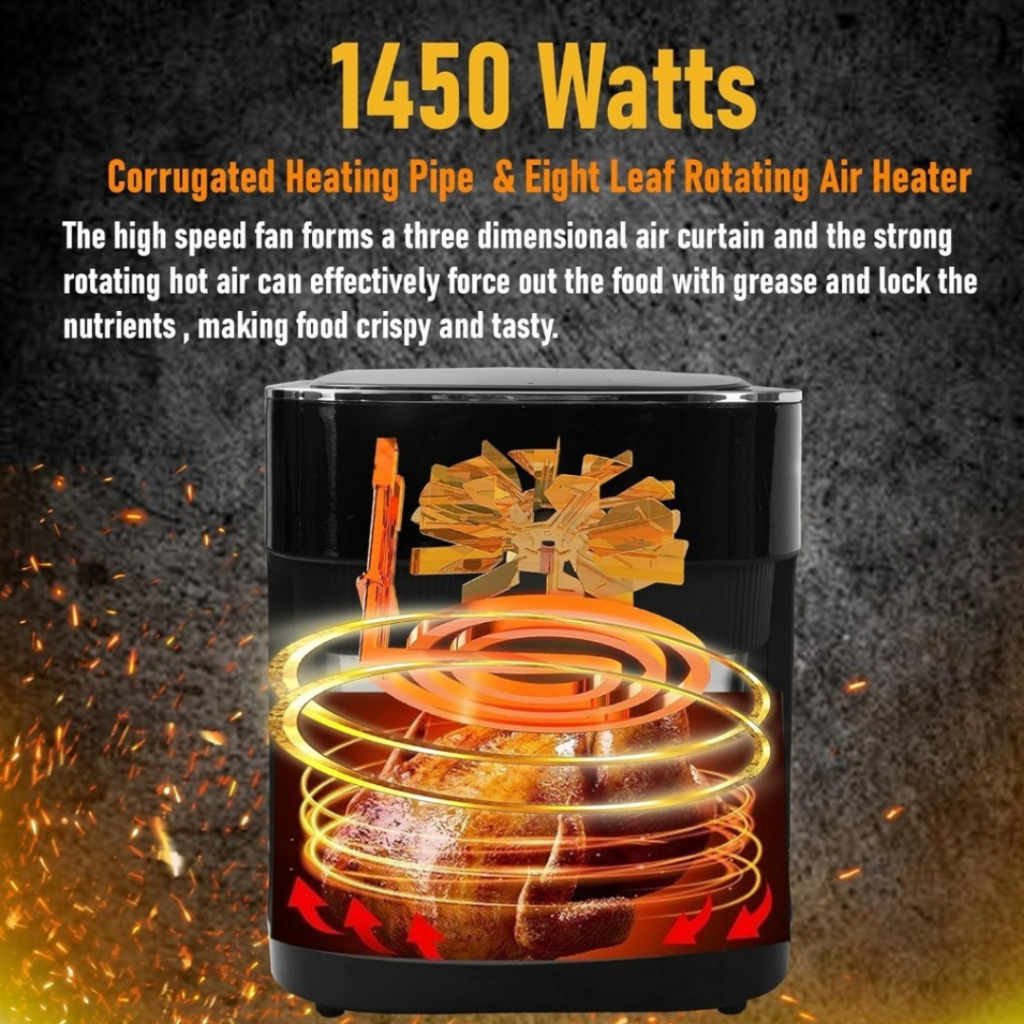 Airfryer HYPER BRAVOMOM 6 Liters Large 1450W Power LED Touch Screen 360°Circylation
