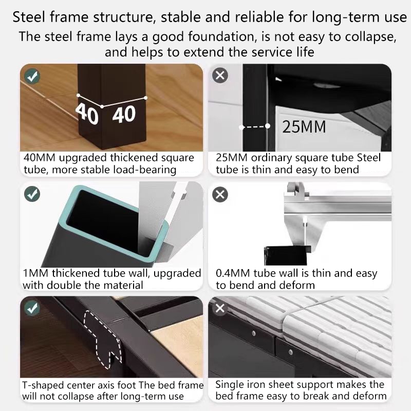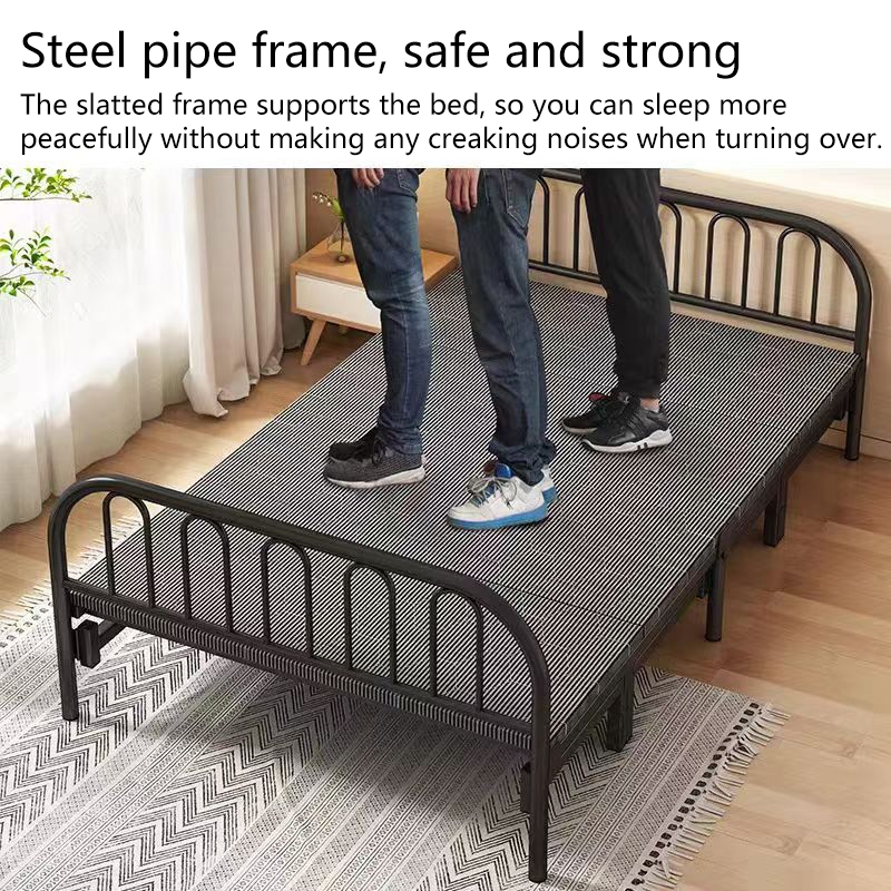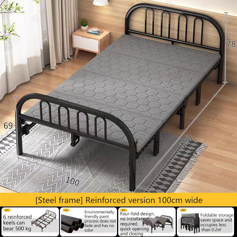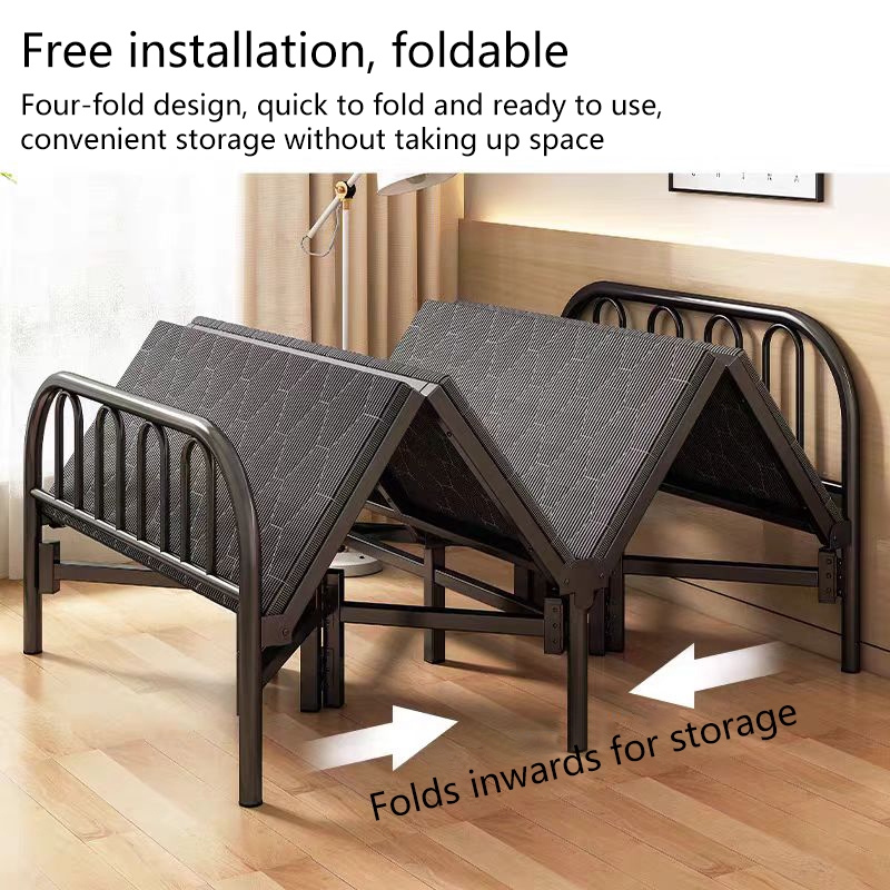 4-Fold Bed Steel Frame Folding Bed with Built-in Mattress Sturdy & Space-Saving Design Easy Storage 90/100/120cm Size Options