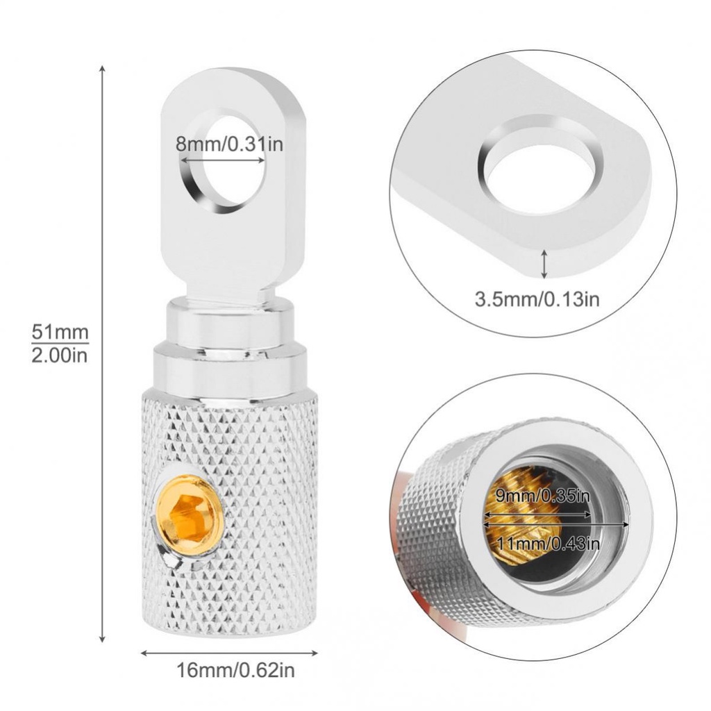 4 Gauge Brass with Nickel Plated Ring Set Screw Battery Ring Terminals Amp Input Reducers for 4- 6 Gauge Wire