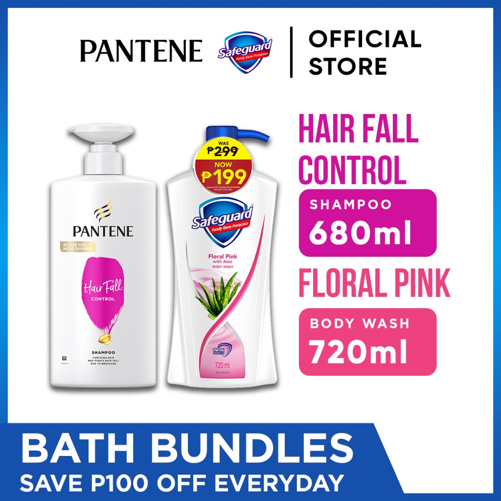 Pantene Hair Fall Control 680ml Shampoo + Safeguard Pink 720mL Body Wash Promo