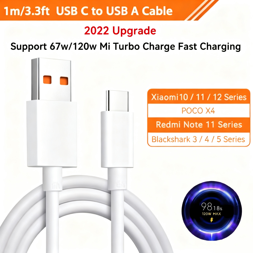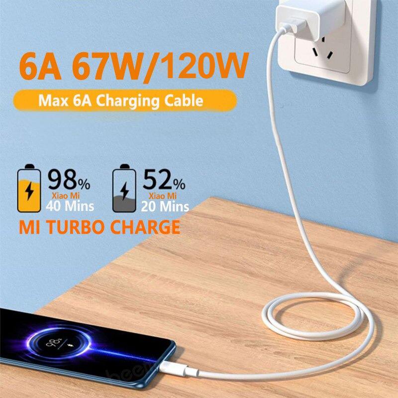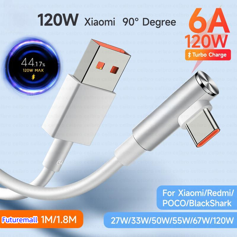 Xiaomi 33W 55W 67W 120W Fast Charger 6A Elbow Type C Data Cable for Xiaomi Redmi Note 10 11 11E Pro