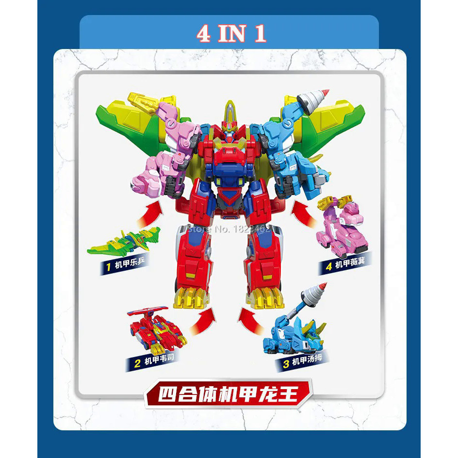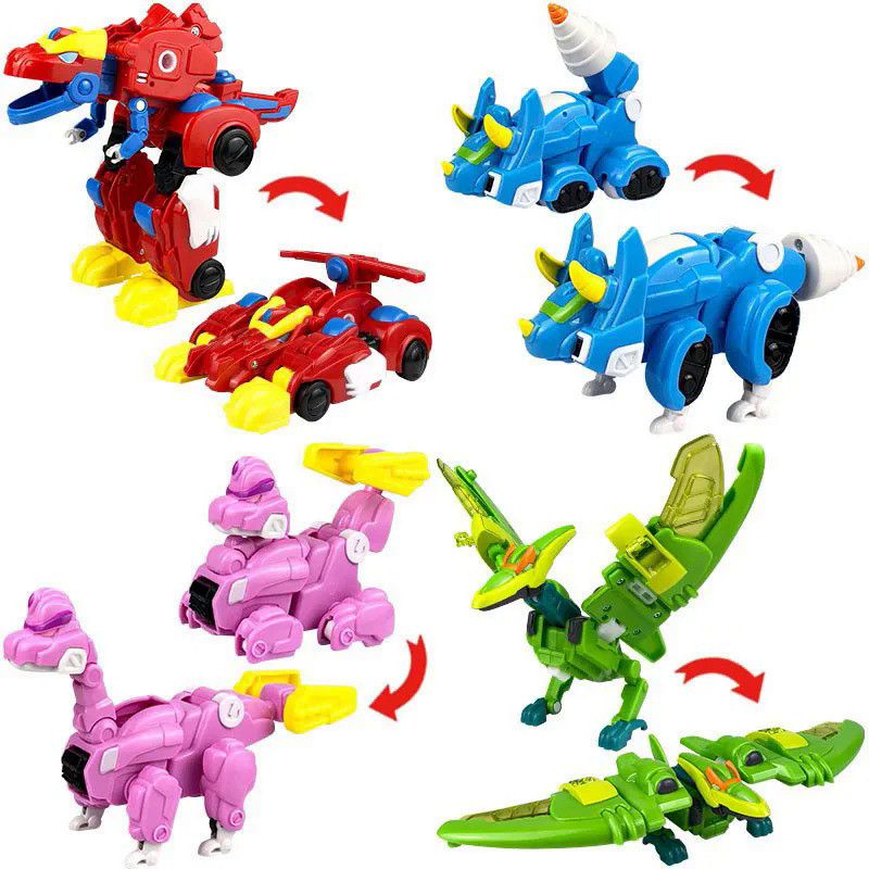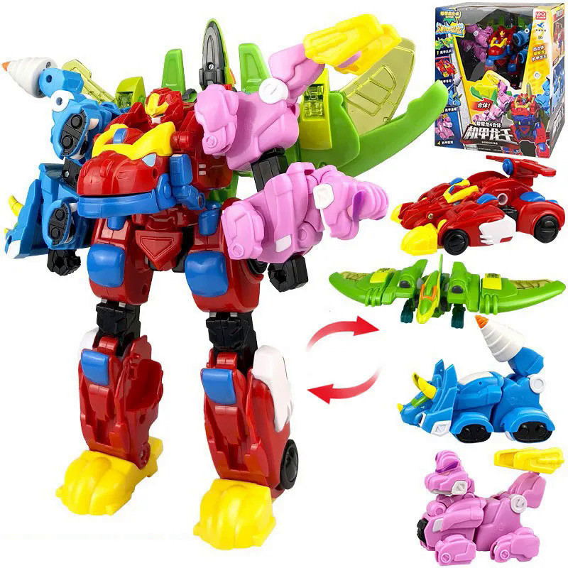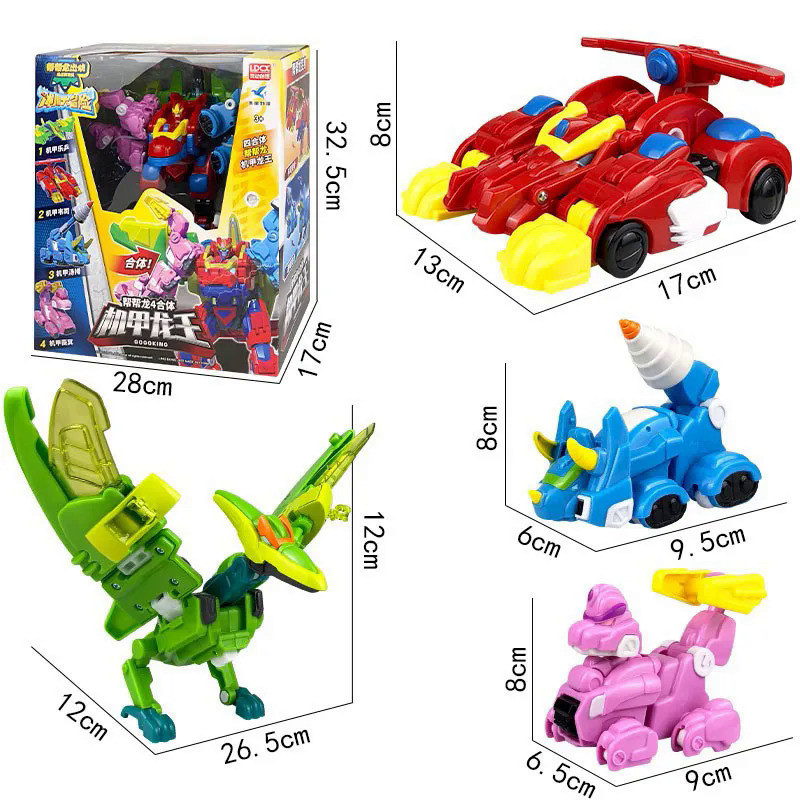 4 IN 1 ABS Deformation Gogo Dino Robot Toy Action Figures Transformation Car Airplane Gogo King Dinosaur Toys for Kids Gift