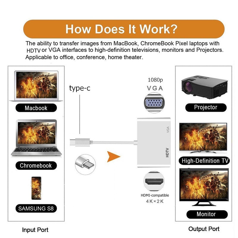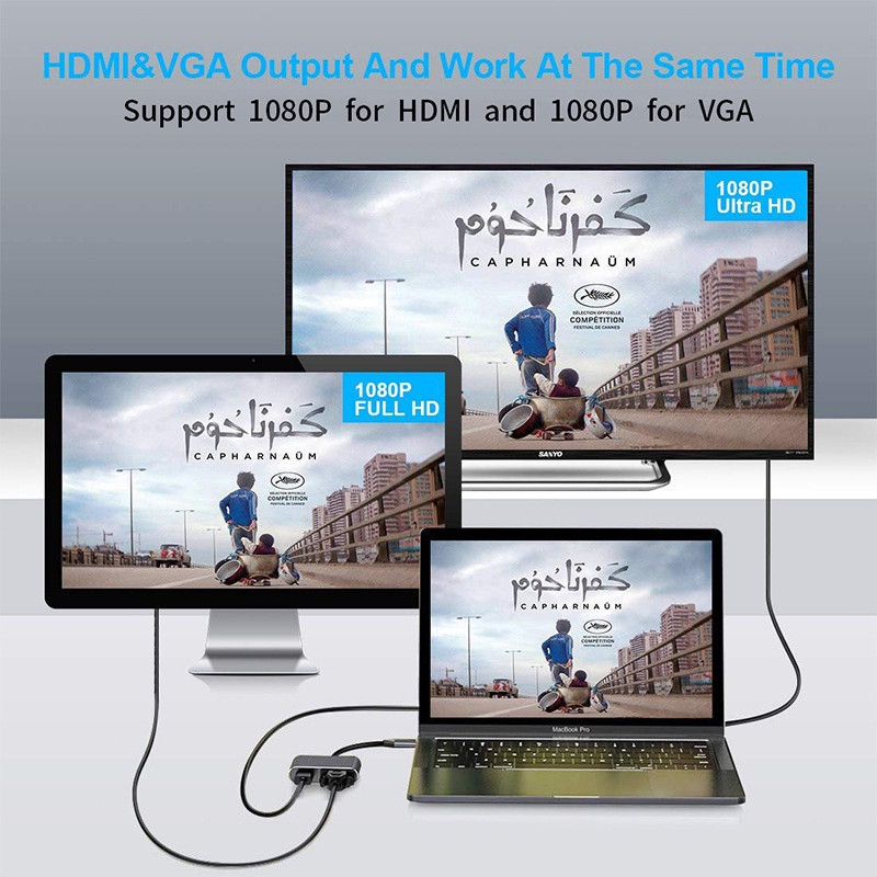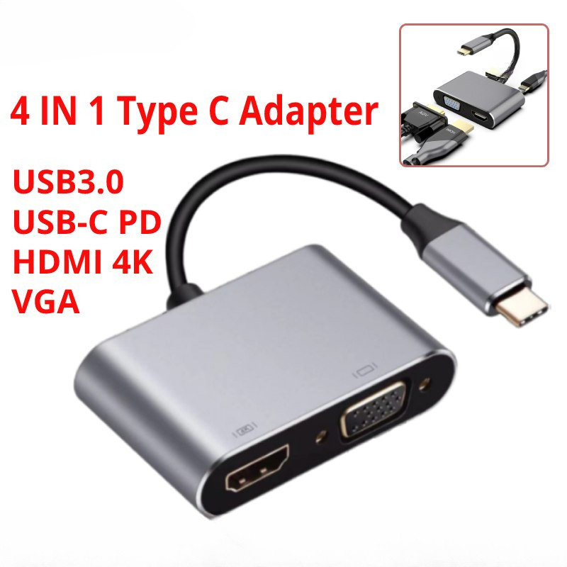 4 IN 1 USBC To HDMI Converter 4K 1080P VGA Adapter TypeC to VGA HDMI Video Cable Adapter For Laptop