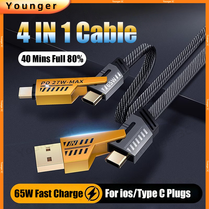 4 In 1 Mecha Fast Charging Cable USB Type C 65W Charger Data Cord Multi-device PD 27W Flash Charging Wire For ios 15 14 Type C