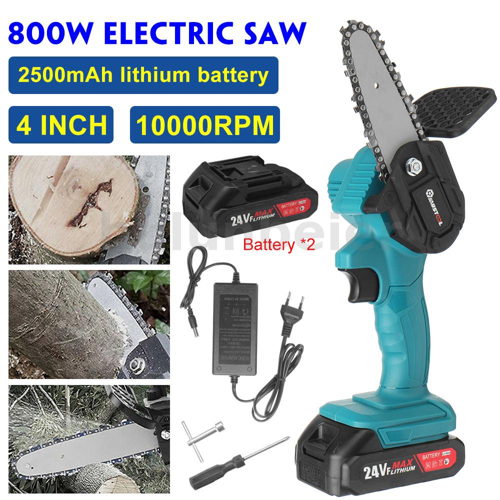 4 Inch 800W Electric Cordless Chainsaw Chain Saw w/ 2 Battery One-Hand Saw Power Driver Tools Set
