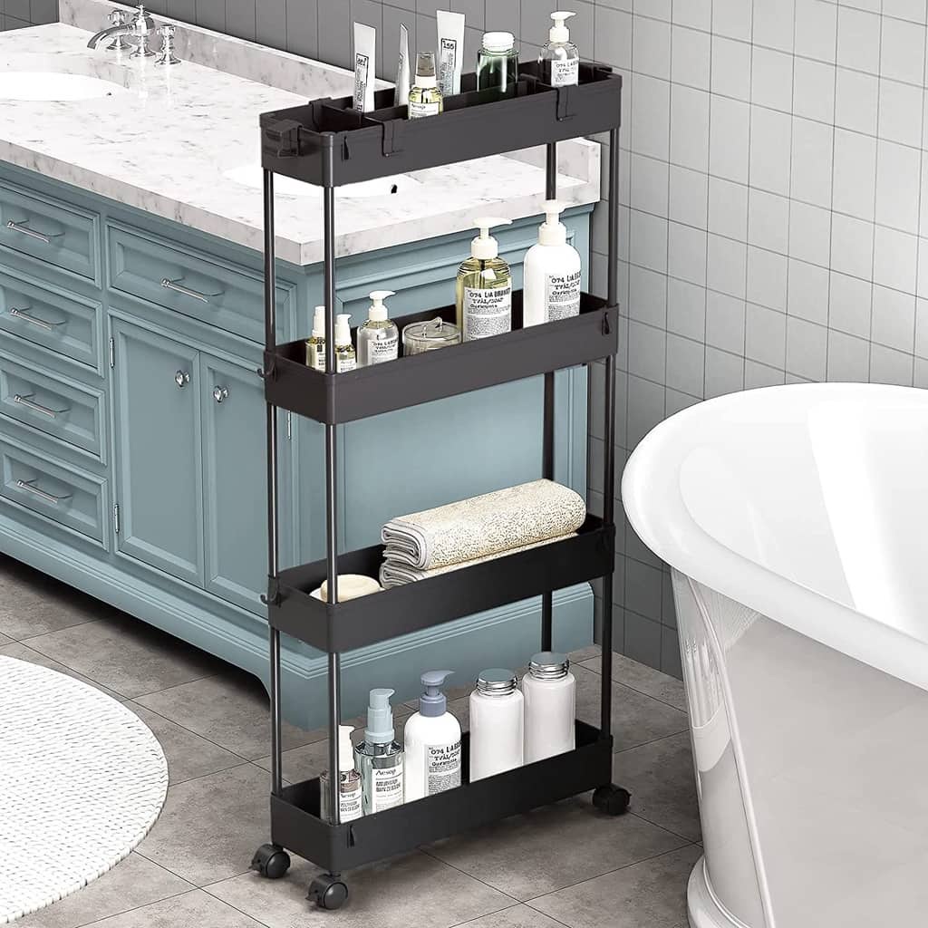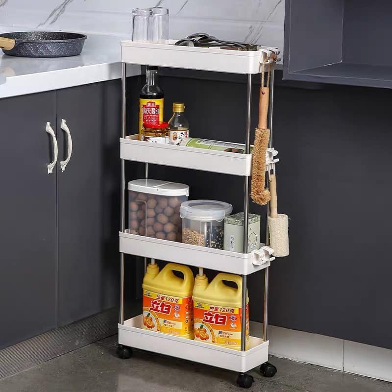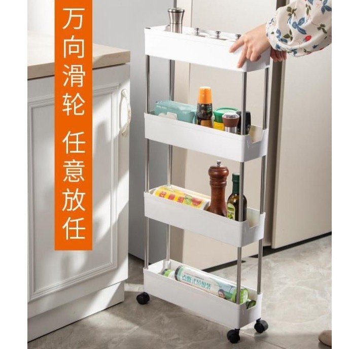 4 Layer Moving Rack Kitchen Storage Shelf Wall Cabinets Home Bedroom Bathroom Organizer Trolley