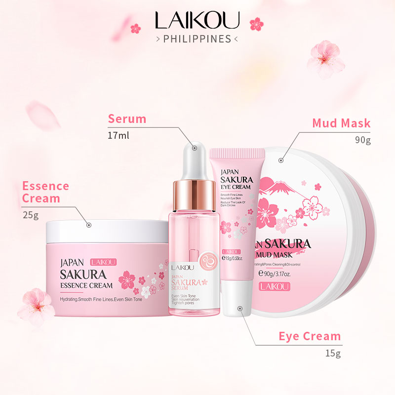 LAIKOU 4pcs SAKURA Skin Care Set Serum Eye Cream Reduce Fine Lines Face Cream Mud Mask Cleansing