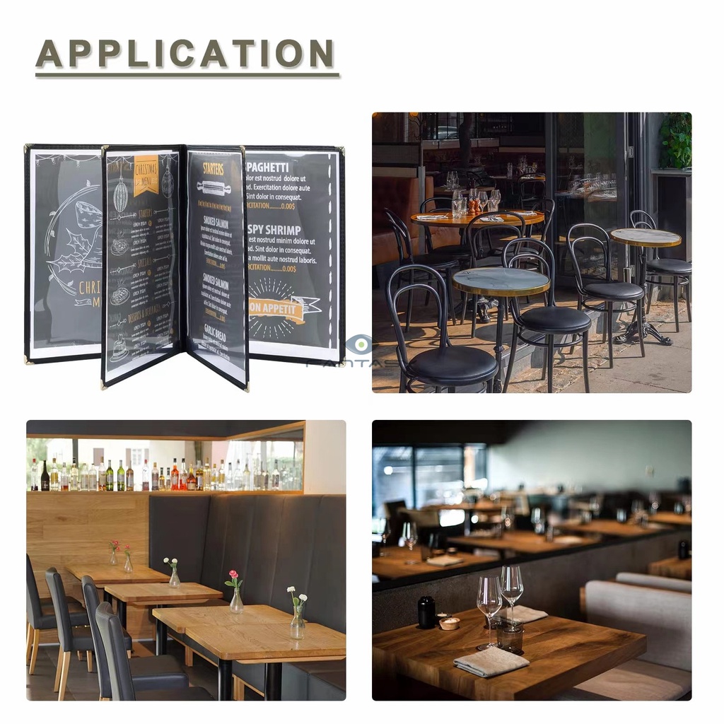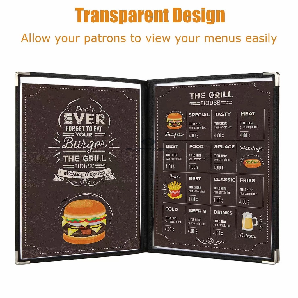 4 Pages 8 Faces A4 Transparent Menu Covers Restaurant Menu Folder Menu Book Price List Holder BLACK