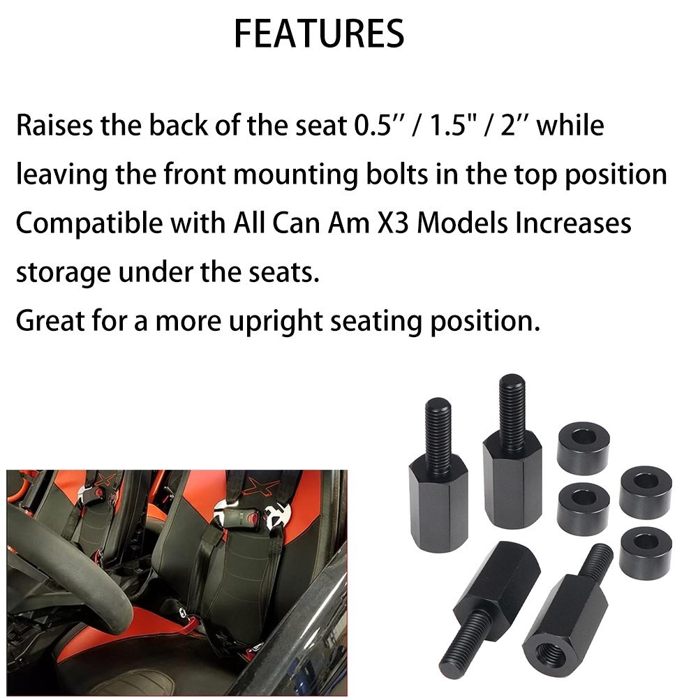 4 Pcs Height Adjuster X3 Seat Riser Brackets Lift Mount Kits For All Can Am X3 Models Lift Up UTV Seat Riser Extenders Black