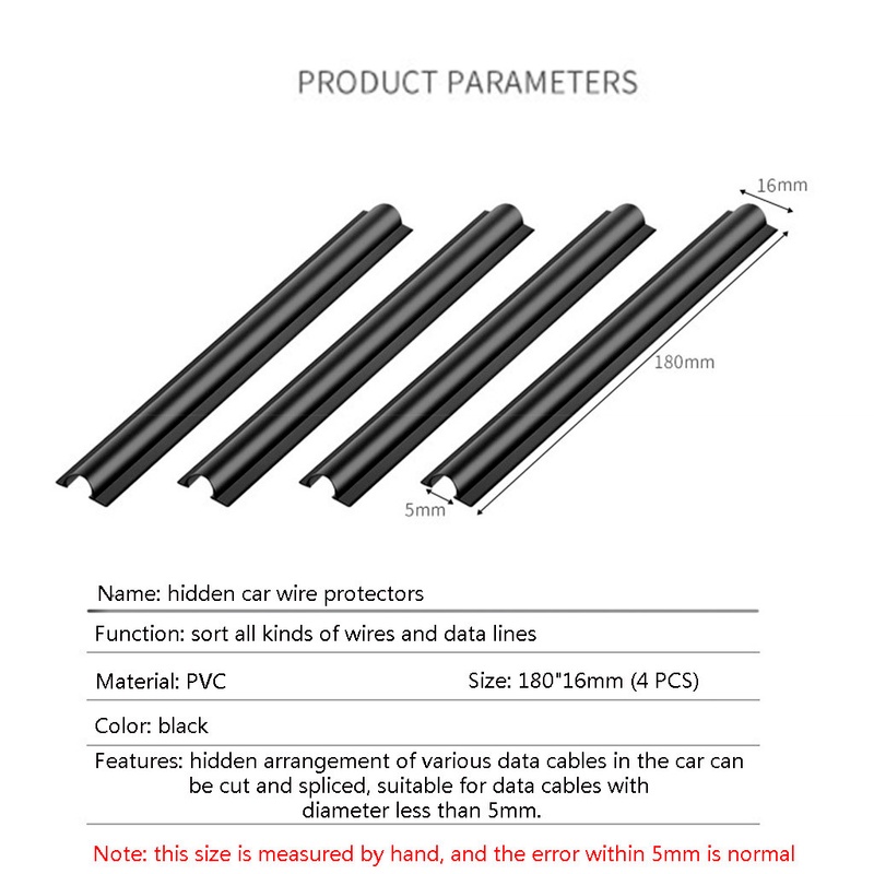 4 Pcs/set Hidden Wire Cover Car Cable Clip Organizer Protector Line Sleeve with Double-sided Tape for Auto Interior Accessories