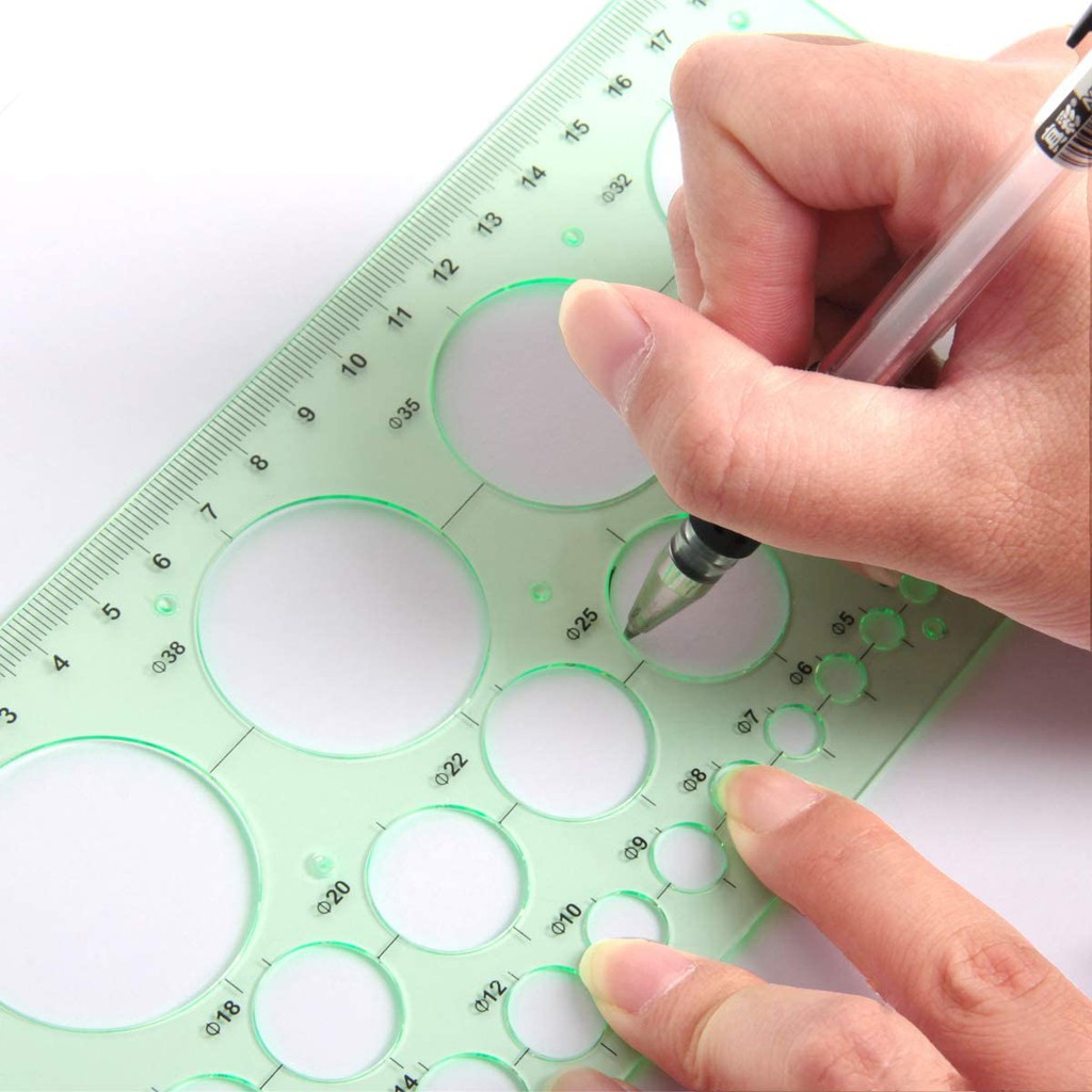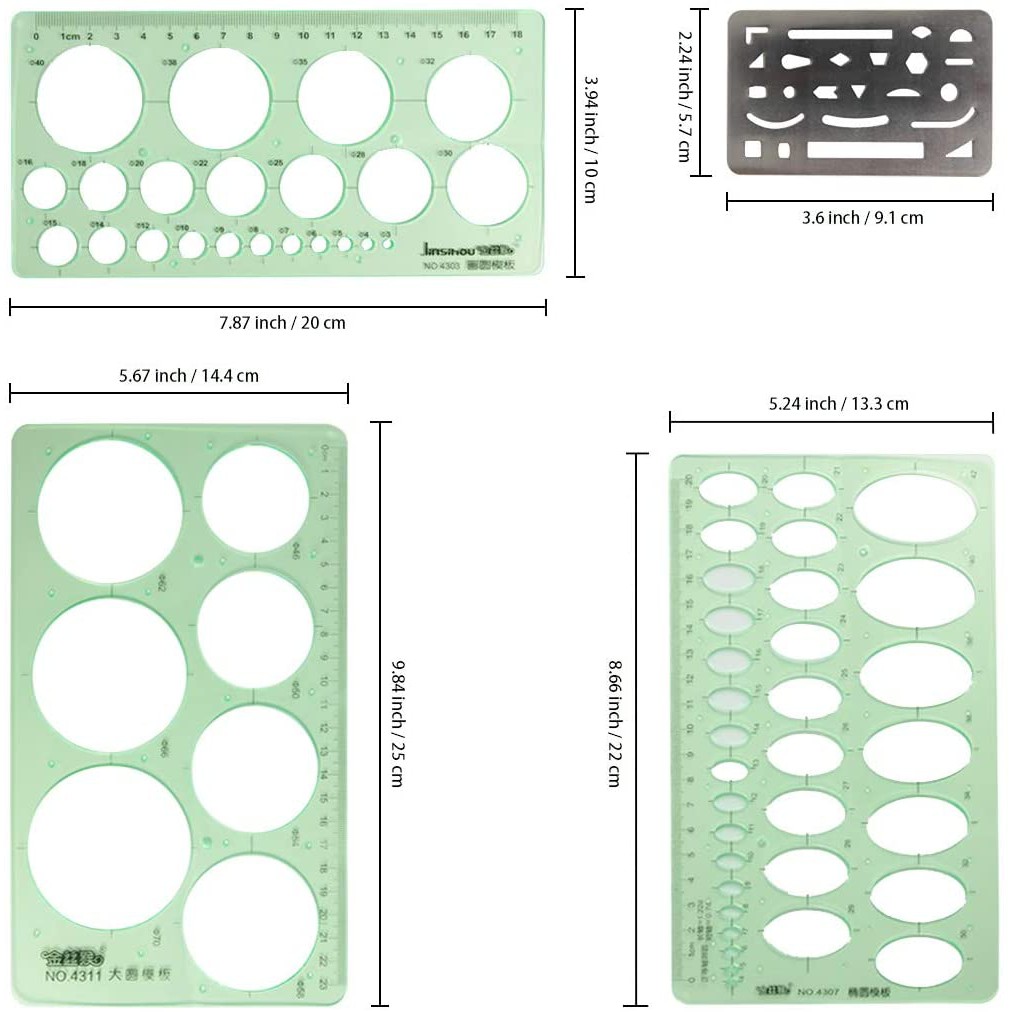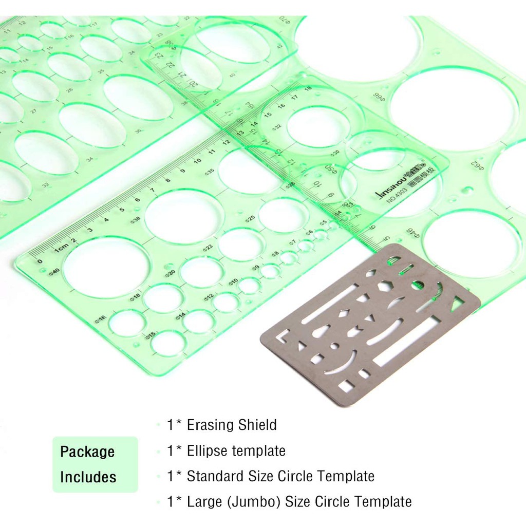 4 Pieces Circle Drawings Templates Stencils with Erasing Shield, Geometric Plastic Measuring Template Draft Rulers for Drawing, Building Engineering, Drafting, School Office Supplies