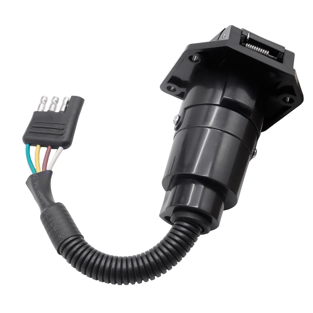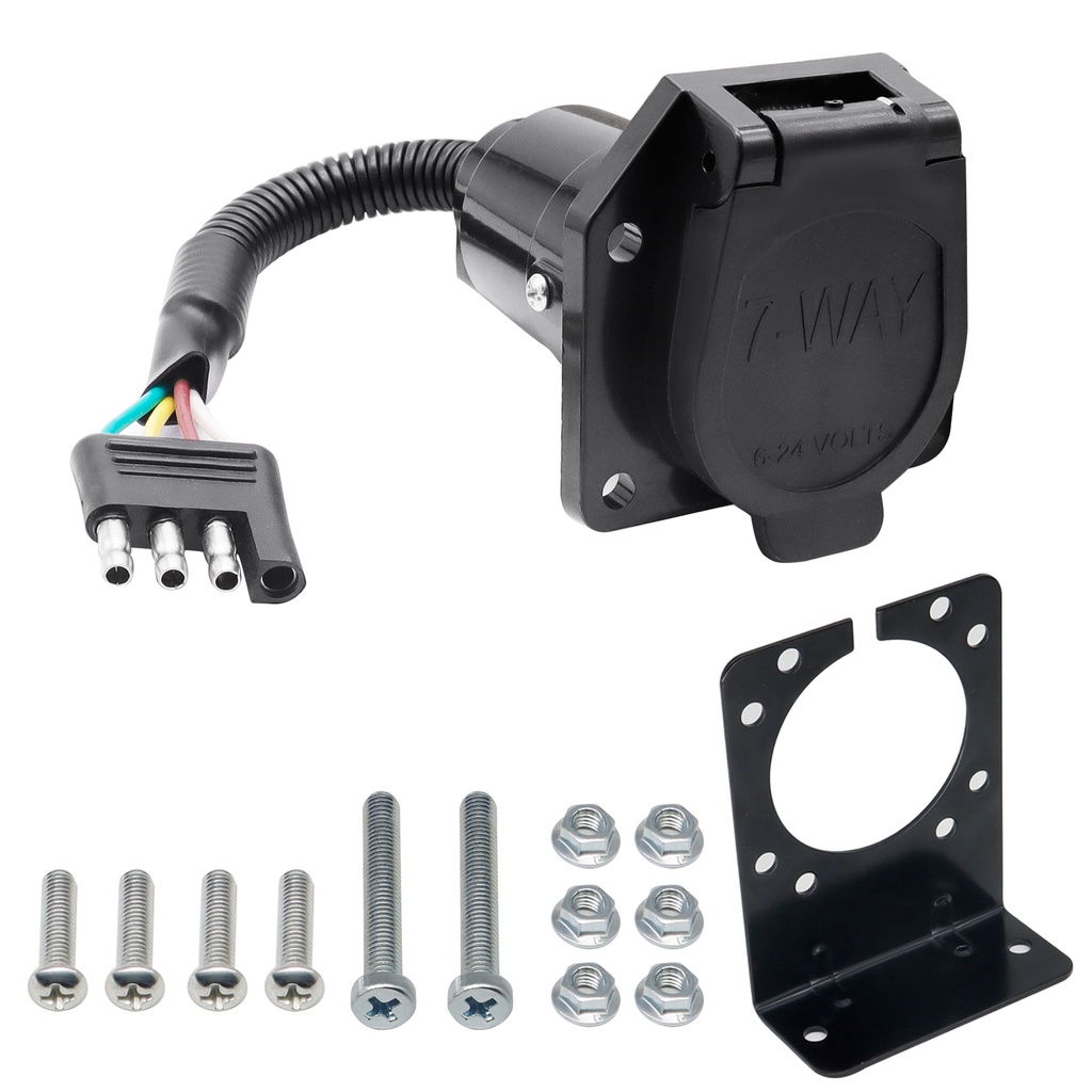 4 Pin Flat to 7 Way Round Blade Trailer Plug Adapter RV Tow Truck Light Wire Wiring Connector Bracket Waterproof Cover 6 - 24V