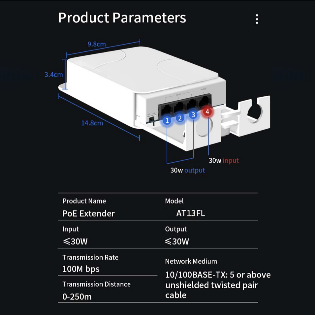 4 Port 100/1000Mbps Waterproof POE Repeater 1 to 3 Network Switch PoE Extender for IPC/NVR