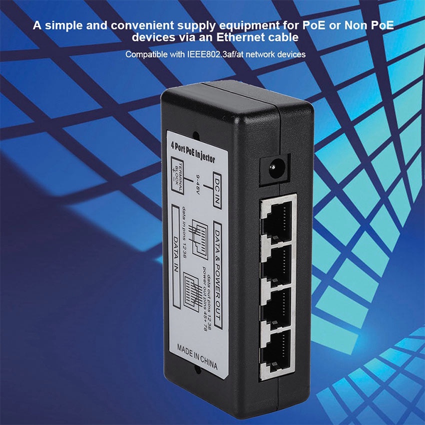 4 Port POE Over Ethernet Injector For CCTV Surveillance IP Cameras Power Over Ethernet Adapter